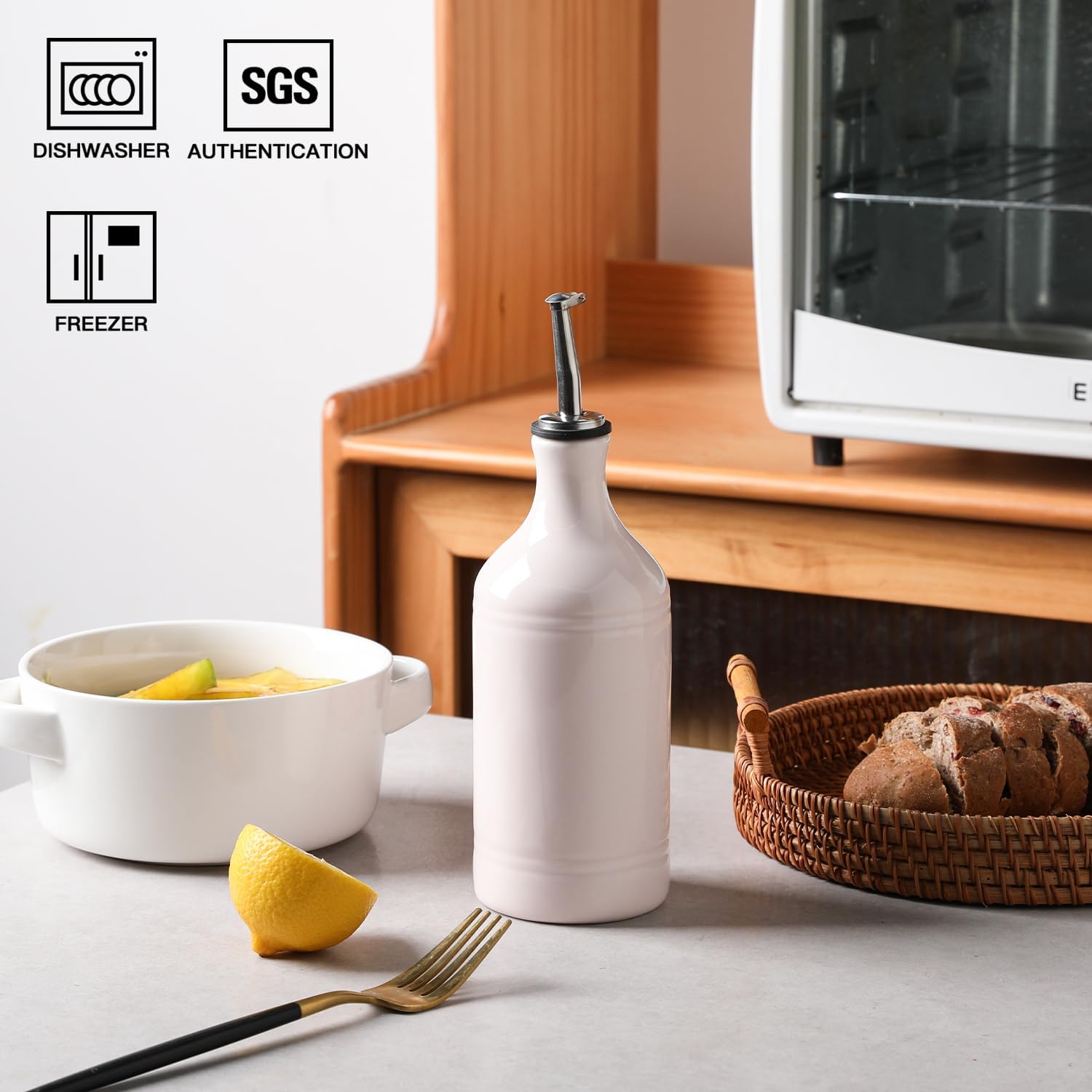 • Leak Proof & Keep Liquid Fresh - The bottle is made of durable ceramic that creates a smooth glaze. And the opaque porcelain bottle protects the oil from light and makes it last longer.