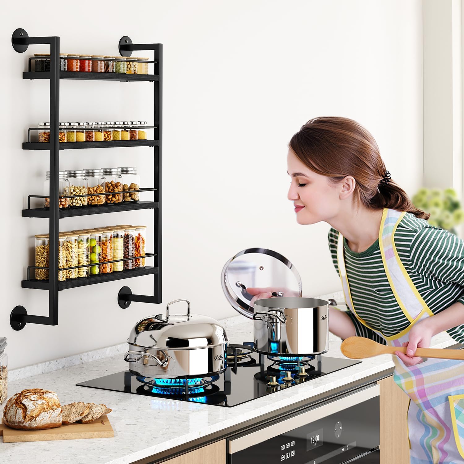 • ROBUST AND RELIABILITY: Our spice racks have added side guards and bottom fixing discs to ensure safety and stability. The guards prevent spices from falling. Compared with most products on the market, our spice racks are more durable and have a large capacity to meet your different needs.