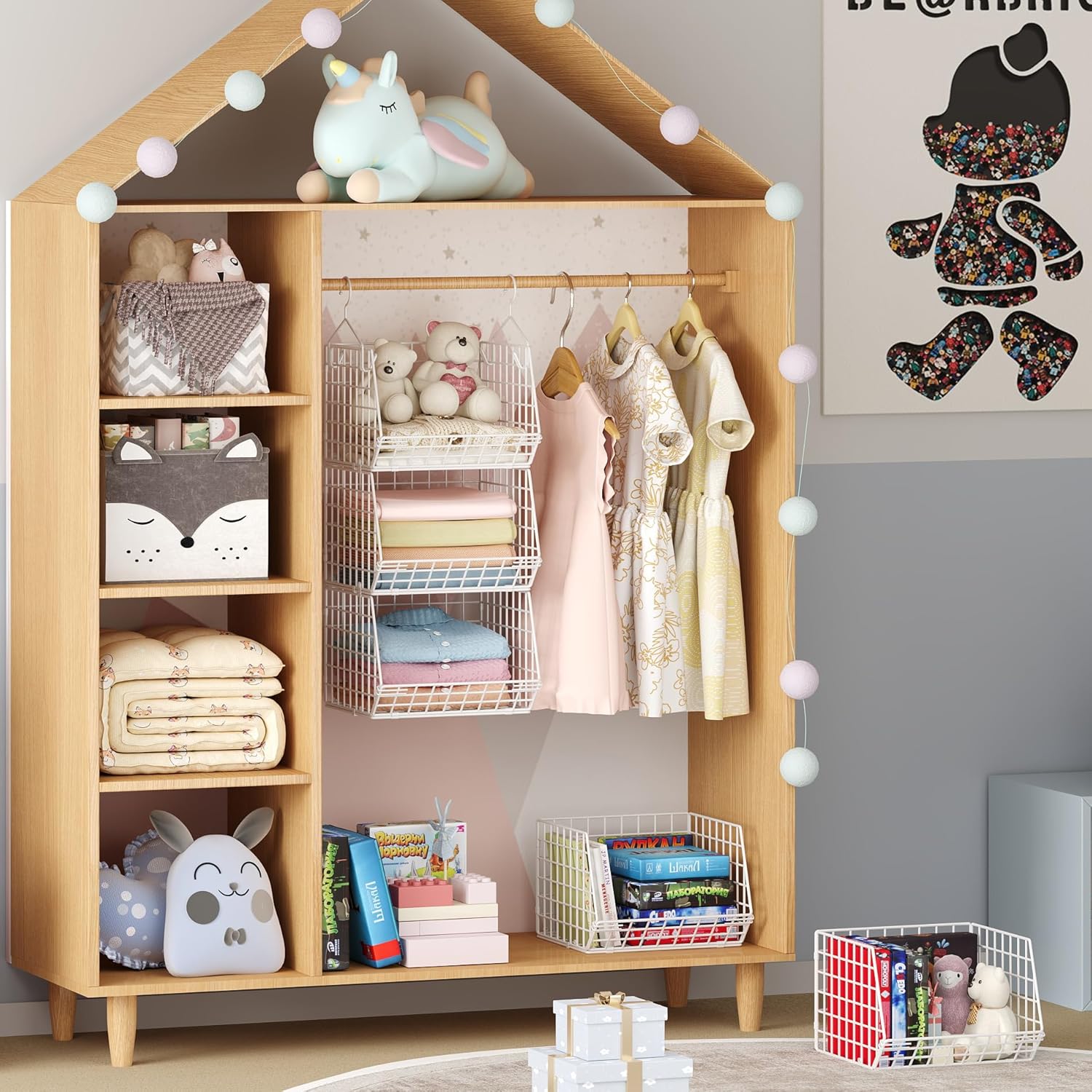 • Perfect Storage Organization: 4 tier wide open wire basket allows you to easily view, put in and take off more easily. X-cosrack metal basket hanging shelves provide a great storage solution for any room in the home. Organize clothes accessories and toys in your closet, lotions in your bathroom, containers in your pantry, office supplies, mails in your office, fruit&vegetable&spices in your kitchen.