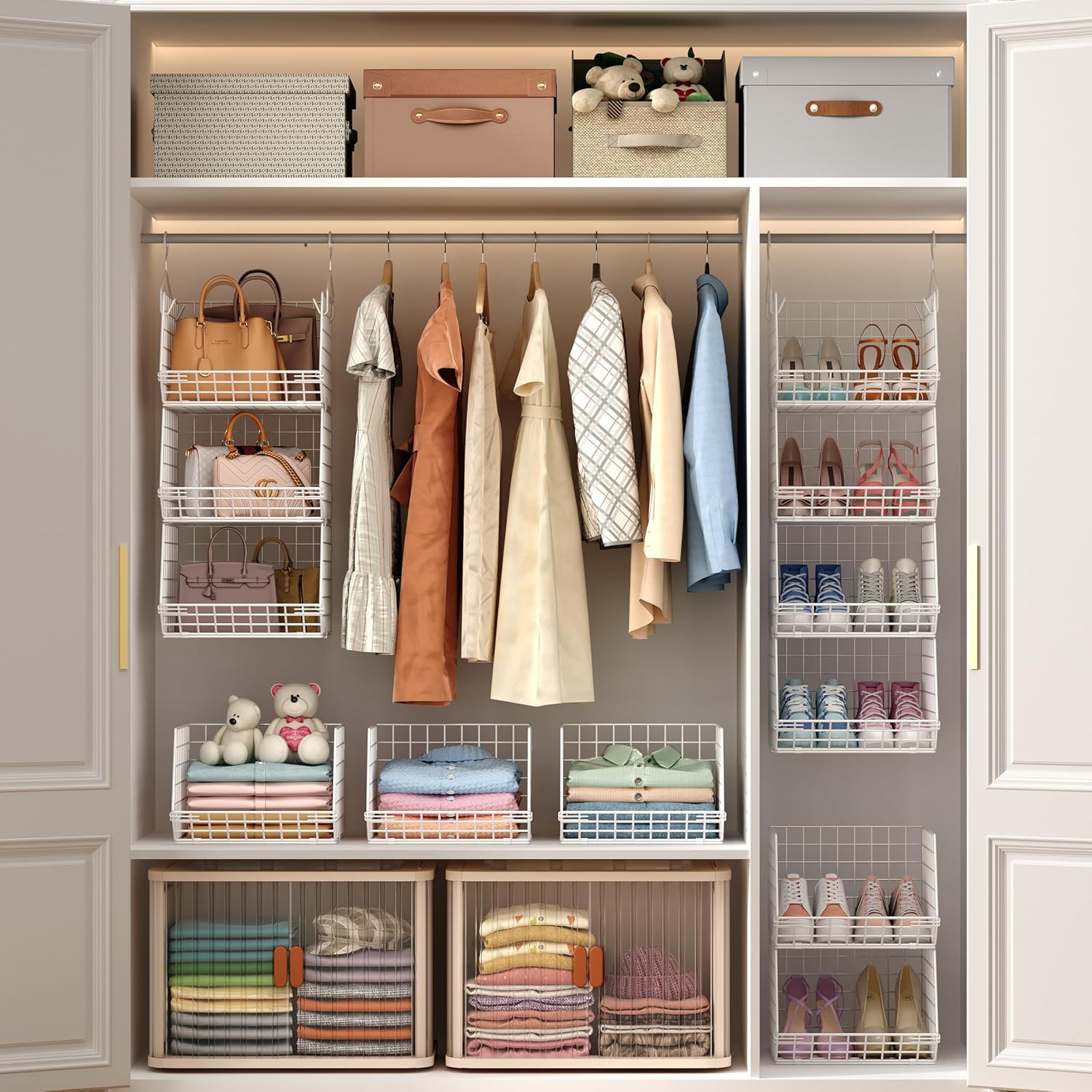 • 4 in 1 or Use Alone: X-cosrack closet hanging organizer is the layered design, used alone or stacked according to your own need and idea. And you can screw all the three baskets together and hang them as a unit on the closet rod to store clothes, hats, sweaters, jeans, shirts, shoes, purses and other accessories. Also, you can hang 2 baskets on the wall, and place 2 on the shelf. You can DIY the using methods.