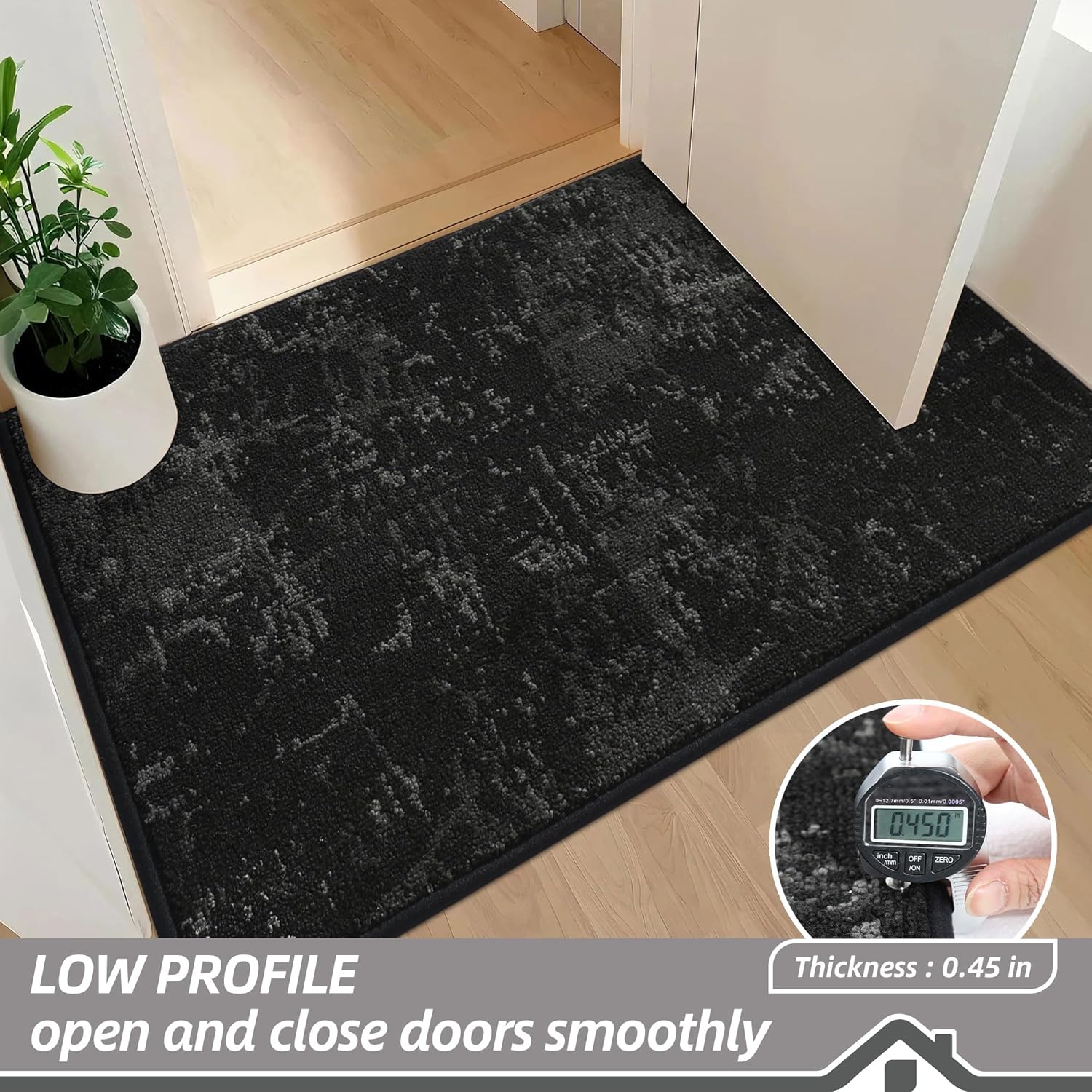 • LOW PROFILE DESIGN: Our doormats are 0.45" thick, low-profile design and reinforced overlock edges to ensure that doors won't get stuck or the door rug go curling. Suitable for front door, back door, entryway, indoor entrance, etc. Note: Please confirm the height of the door gap before purchasing
