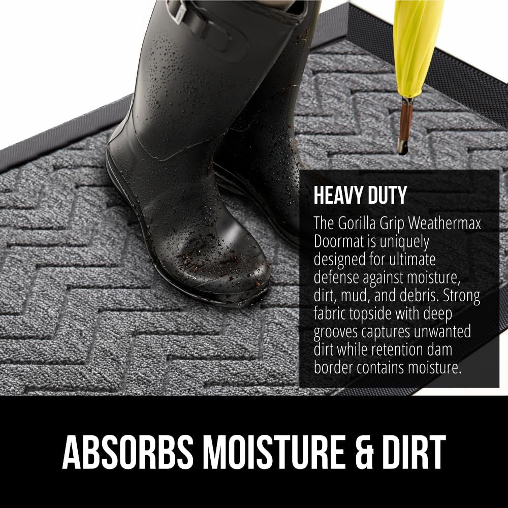 • THE ORIGINAL WEATHERMAX ALL SEASON DOORMAT: Gorilla Grip's Original WeatherMax doormat is built tough with a heavy duty, yet soft and flexible construction; deep grooves, beveled rubber border and retention dam help capture dirt, debris and moisture