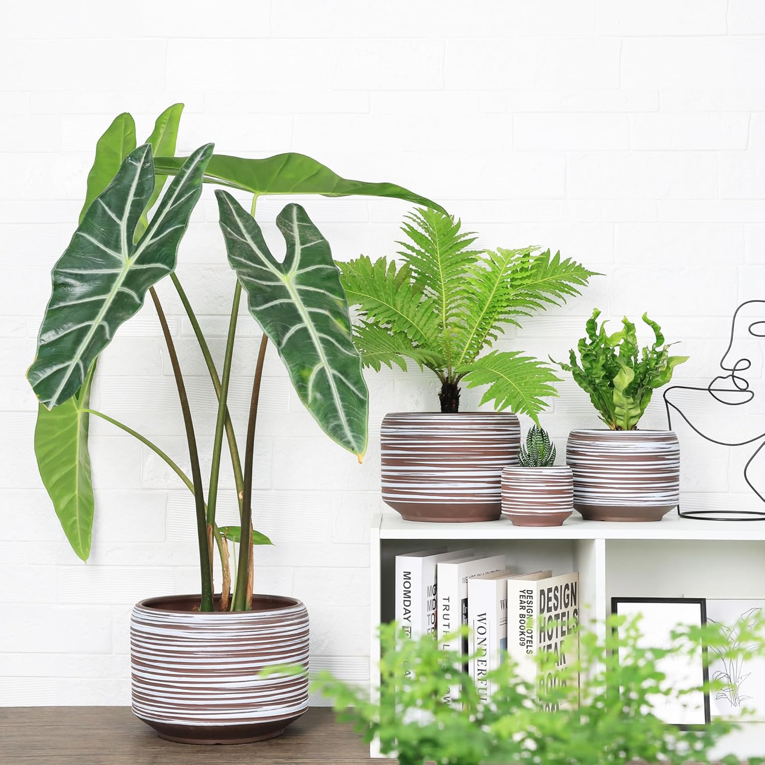 • 【Ribbed Ceramic Surface with Matte Texture】:This large ceramic flower pot features a raised striped design with a brushed matte finish. A modern alternative to traditional smooth pots, blending visual depth with functional grip.
