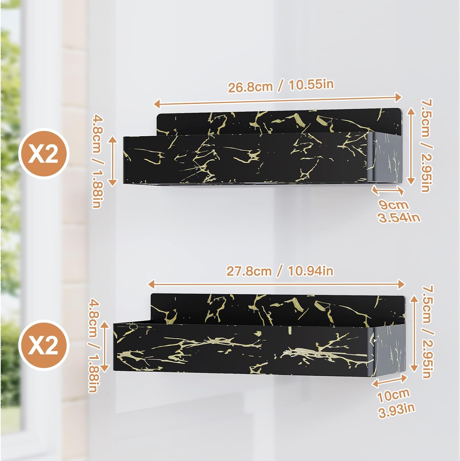Magnetic Spice Rack for Refrigerator, Kitchen Organizer and Storage Shelf, Black Gold(4 Pack)