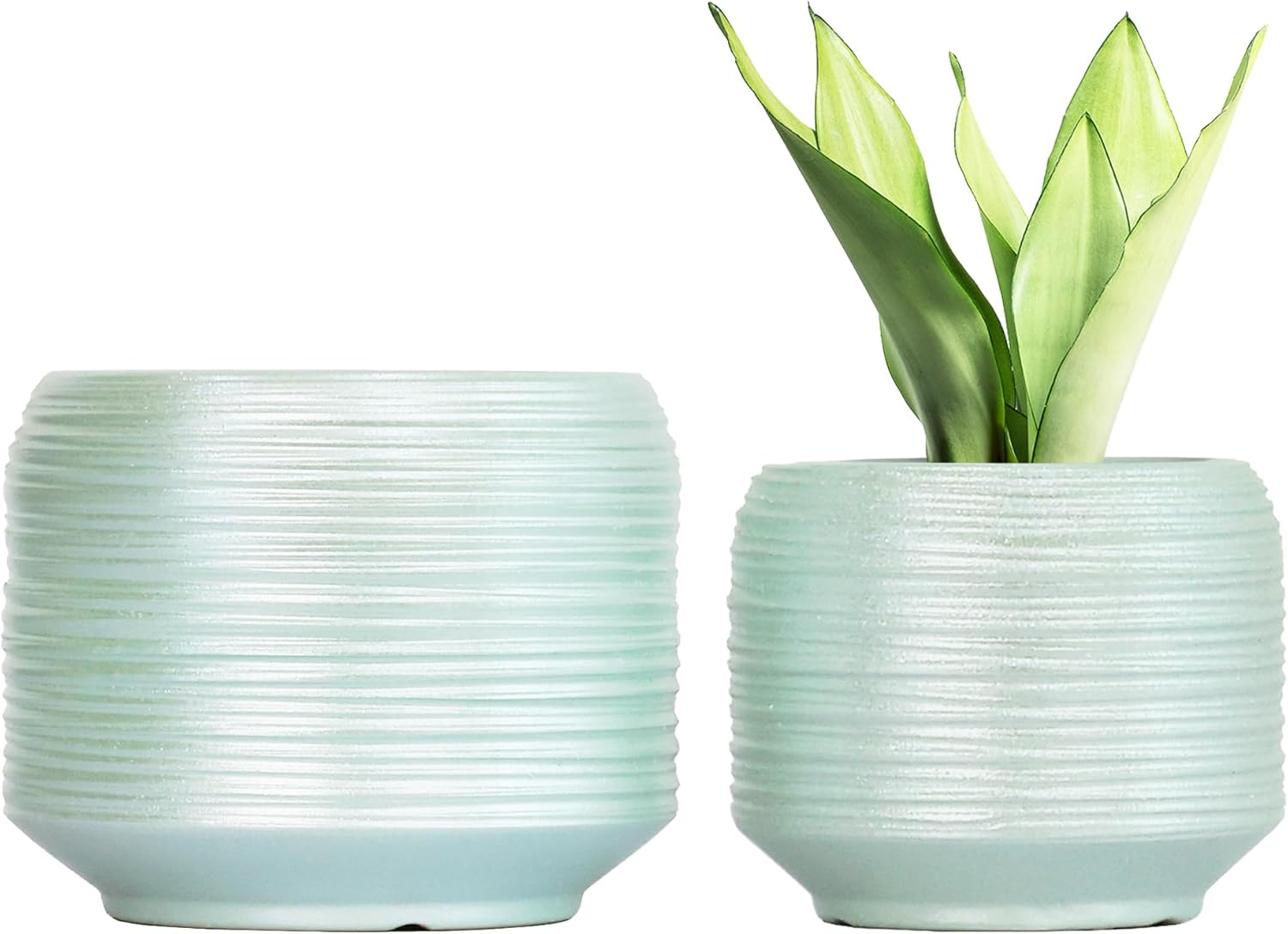 • 【Two Sizes for Versatile Planting】:Includes one 8 inch and one 6 inch ceramic pot with drainage holes. These potting containers for plants are ideal for medium house plants, herbs, or indoor garden displays.