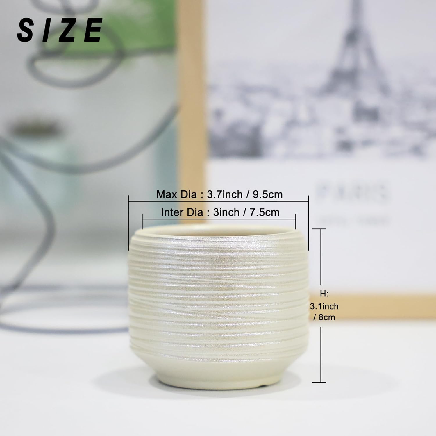 Mini Succulent Planter Set – 3.7 Inch Ceramic Pots with Drainage for Indoor Plants, Small Decorative Flower Pots for Cactus and House Plants, Set of 4