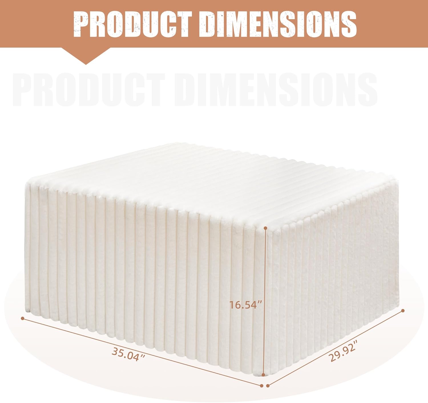 Hobestluk Rectangle Ottoman Memory Foam Footrest for Couch with Removable Cover Large Floor Seating for Adults Ottoman Coffee Table for Living Room, Bedroom or Office (Strip White, Footrest)