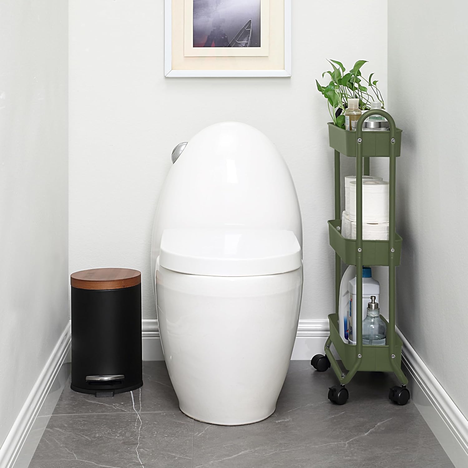 SunnyPoint Slim Rolling Storage Cart, 3 Tier Bathroom Storage Organizer Bathroom, Laundry Utility Cart (Army)