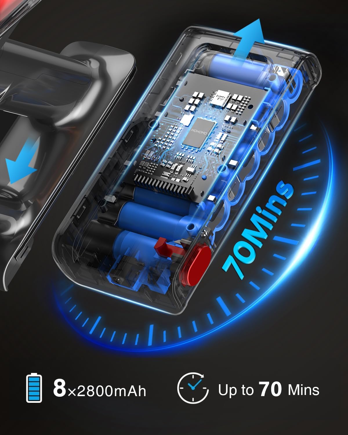 • ➤【 Max 70-min Battery Life & Self-standing Design 】This cordless vacuum cleaner is powered by 8x2800 mAh high-capacity lithium-ion batteries, which radically extends battery runtime. When fully charged (4 hours), the stick vacuum can operate for 20 mins in max suction mode and up to 70 mins in min suction mode. The stick vacuum has a self-standing design that makes it easy to store and recharge for added convenience(Please use MOHOMO's power adapter to charge the battery). Ideal for ‘cleaning the whole house’. A second battery is available for purchase in stores.