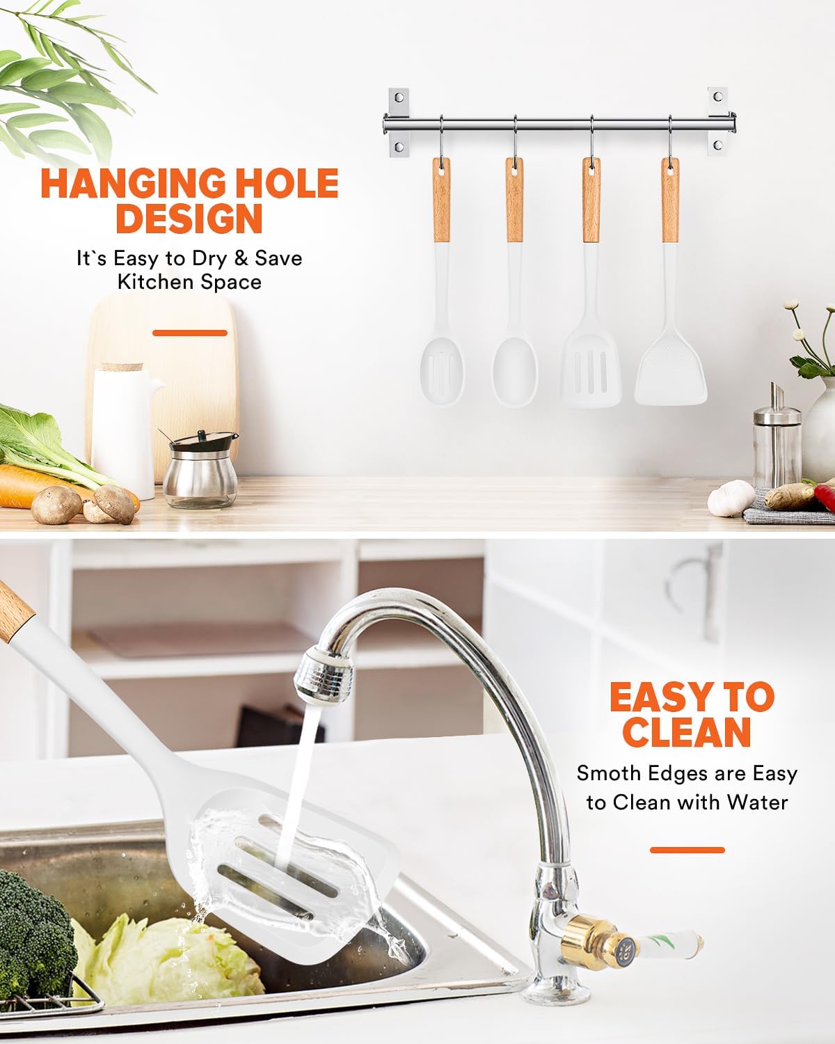 • Gentle on cookware: With smooth edges, our silicone Cooking Utensils protects non-stick cookware from scratches and damage