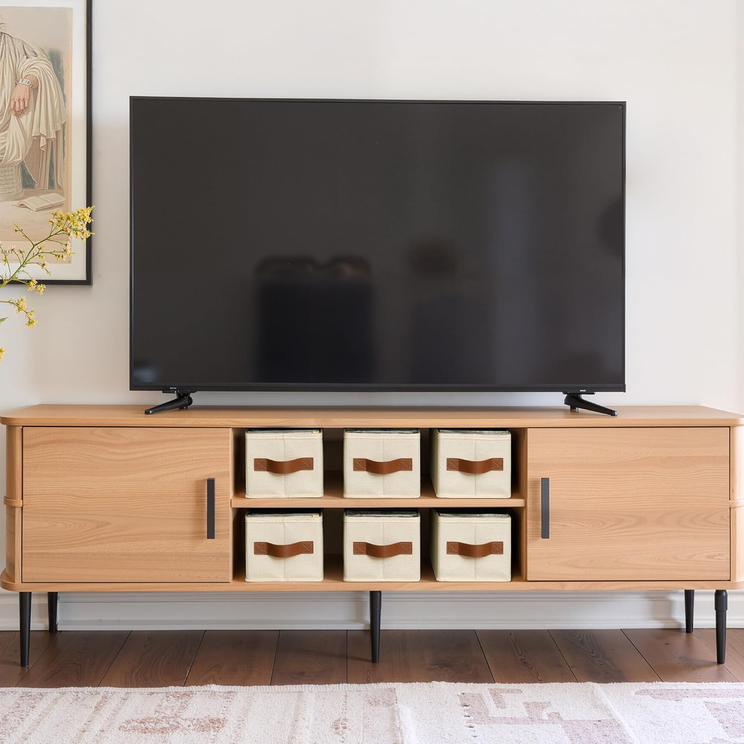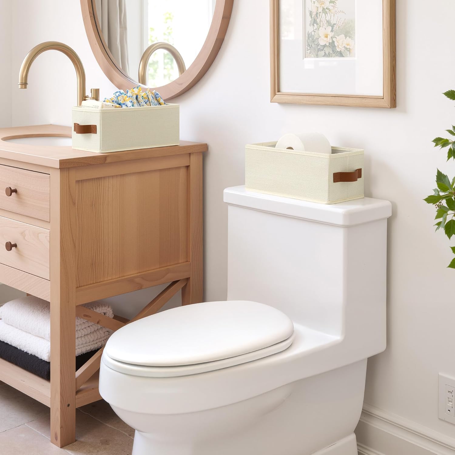 GRANNY SAYS Small Fabric Storage Bins, Storage Baskets for Shelves with PU Handles, Toilet Paper Storage, Mini Baskets for Organizing DVD, Photos, Clothes, Diaper, Sock, Cd, 6-Pack, Ivory