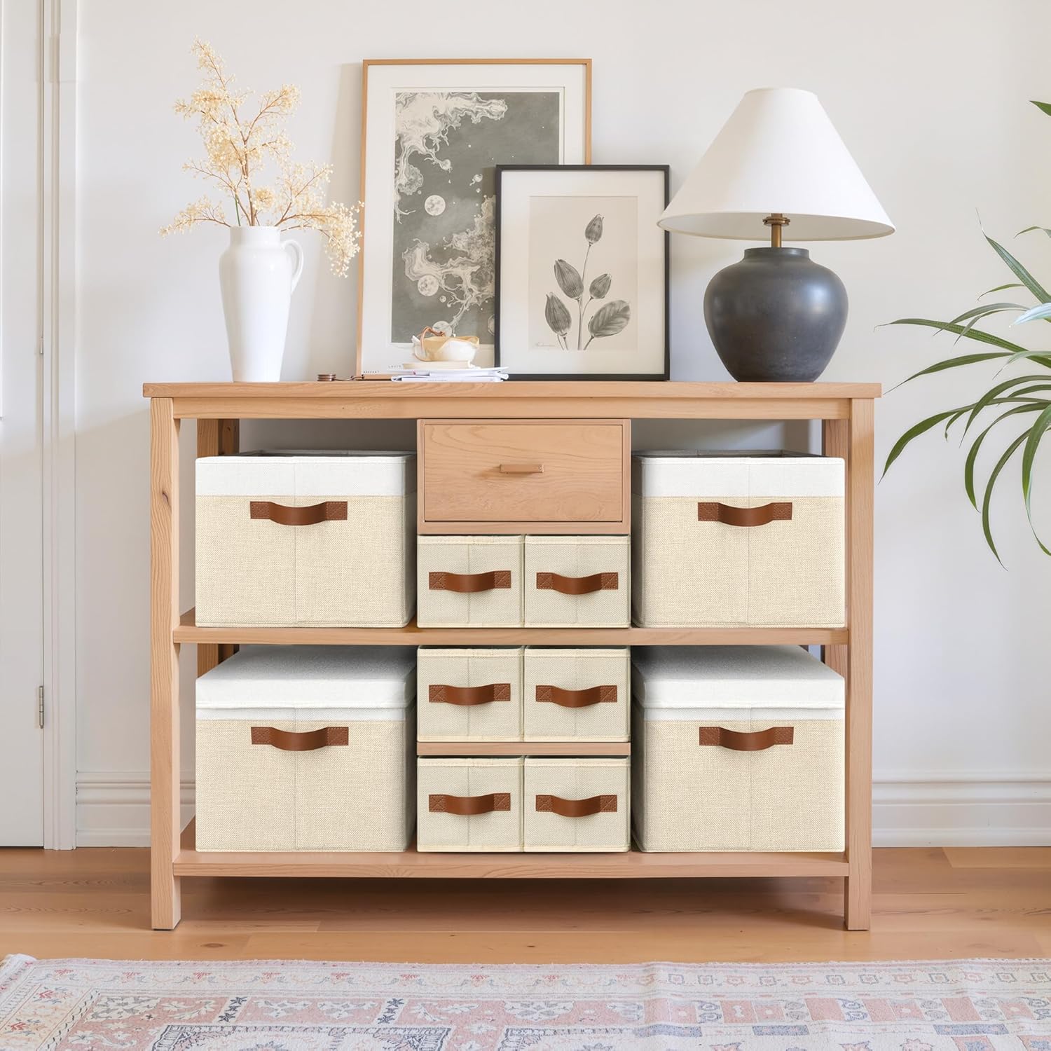 • Easy to Use with PU Handles: Features two PU leather handles that are securely stitched for comfortable grip. Easily pull out or carry the bin from shelves, closets, or tight spaces.
