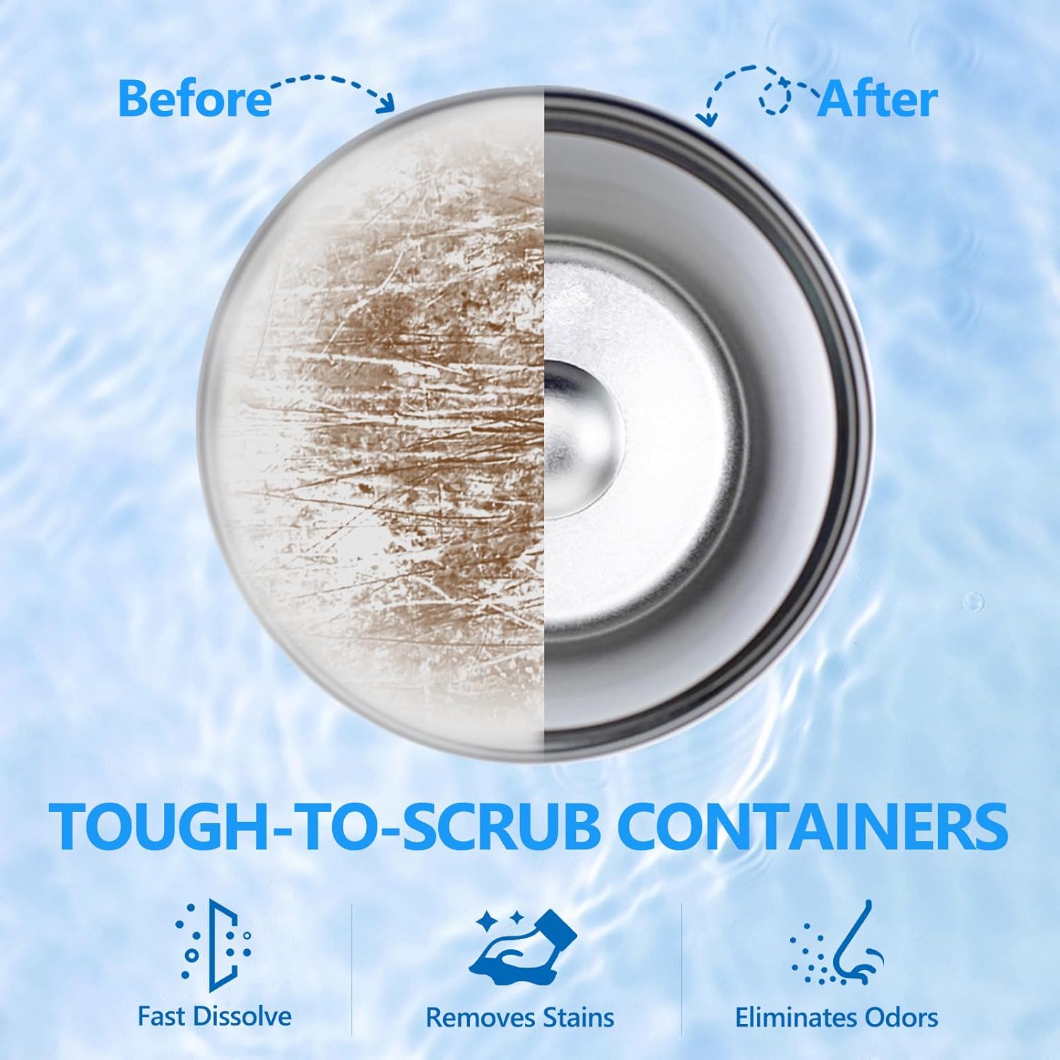 • Quick And Easy&No Scrubbing Required: The bottle clean tablet starts cleaning instantly after contact with water. Natural water bottle cleaning tablets can perfectly clean any stainless steel water bottle, coffee tumbler, glass water bottle, cup, water bladders, baby bottle, hard to clean plastic containers and more.