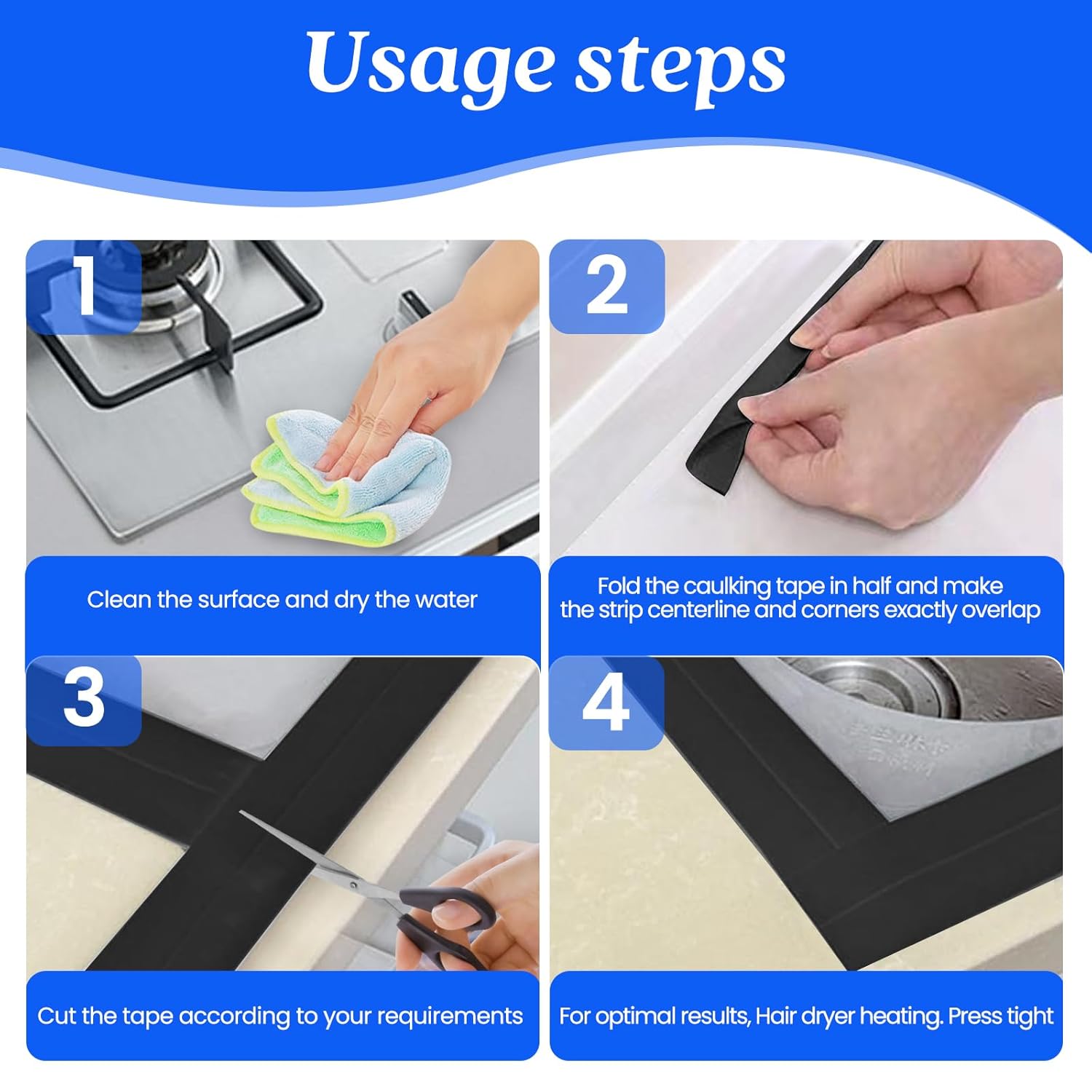 • ✅Easy to Use: Before installation, please clean the area and keep it dry. Cut the bathtub sealing tape as needed, peel off the plastic film and stick the tile joint strip, then press hard and use a small shovel to smooth it out, making it smoother and more beautiful. (Tips: You can use a hair dryer to heat the sealing strip to increase its viscosity)
