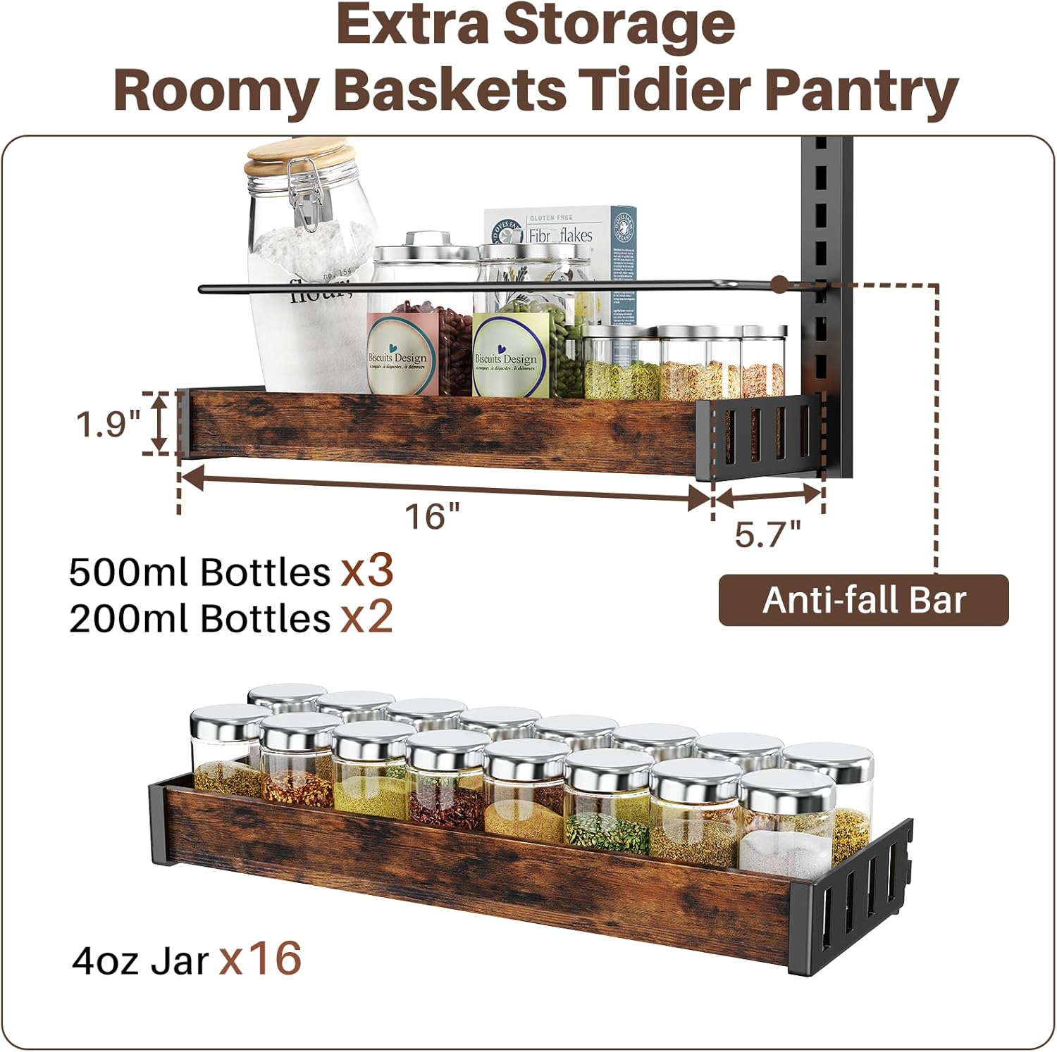 • Elevated Style for Everyday Storage: Designed with a rustic wood panels and sleek metal baskets, this seasoning organizer blends function with decor—perfect for farmhouse, modern, or cozy spaces