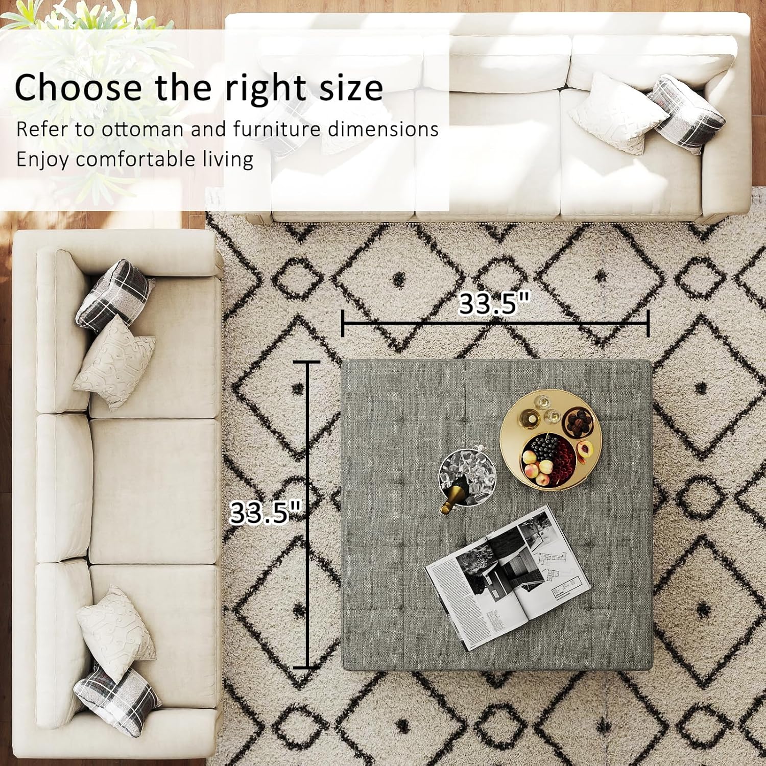 • Ottoman Coffee Table Size:33.5" Wx33.5" Dx18.5" H. Easy to bear 400 pounds