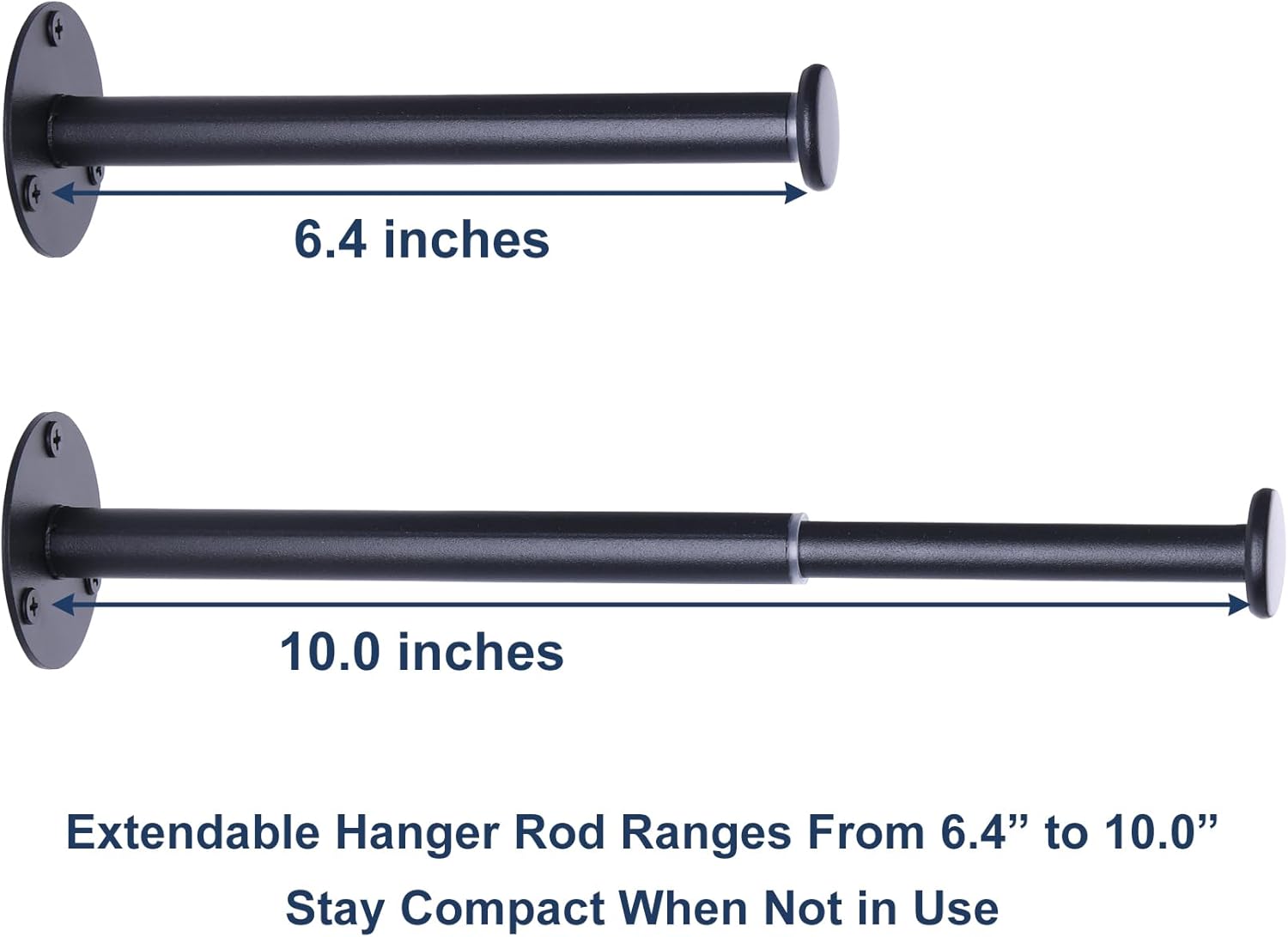 • Extendable Design: Hanger rod can extend from 6.4" to 10", holding up to 37 plastic hangers per rod while staying compact when not in use.