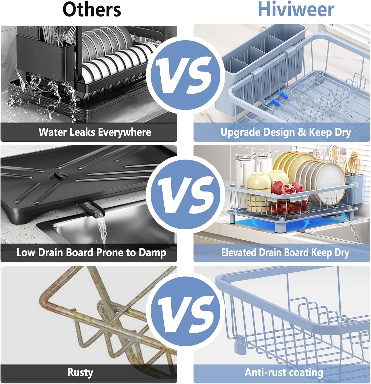 • 【EASY INSTALLATION】Hiviweer kitchen drying rack has a simple structure, no tools are needed during the installation process, my kids can do it easily. Not only does this dish rack have 4 PP plastic non-slip feet, but the draining board feet also come with 4 silicone feet to prevent slipping and make the whole dish rack more stable.