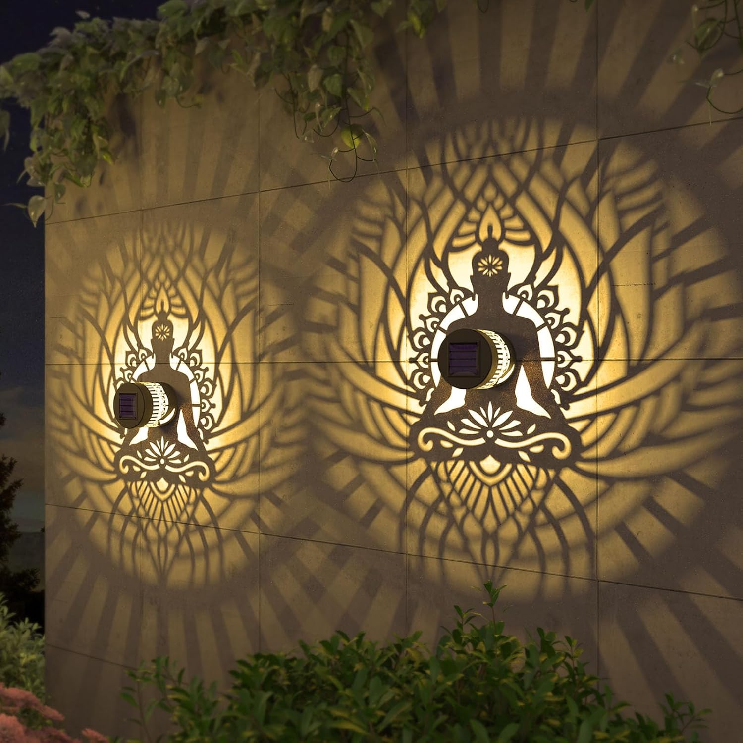 • Good Decoration: 10 lumens of warm yellow light. The small fence solar lights can project a unique and beautiful zen pattern. In a dim environment, the solar lights can illuminate a corner of the fence or the wall and create a beautiful and warm atmosphere. They are very suitable as holiday decorations and gifts for relatives and friends.