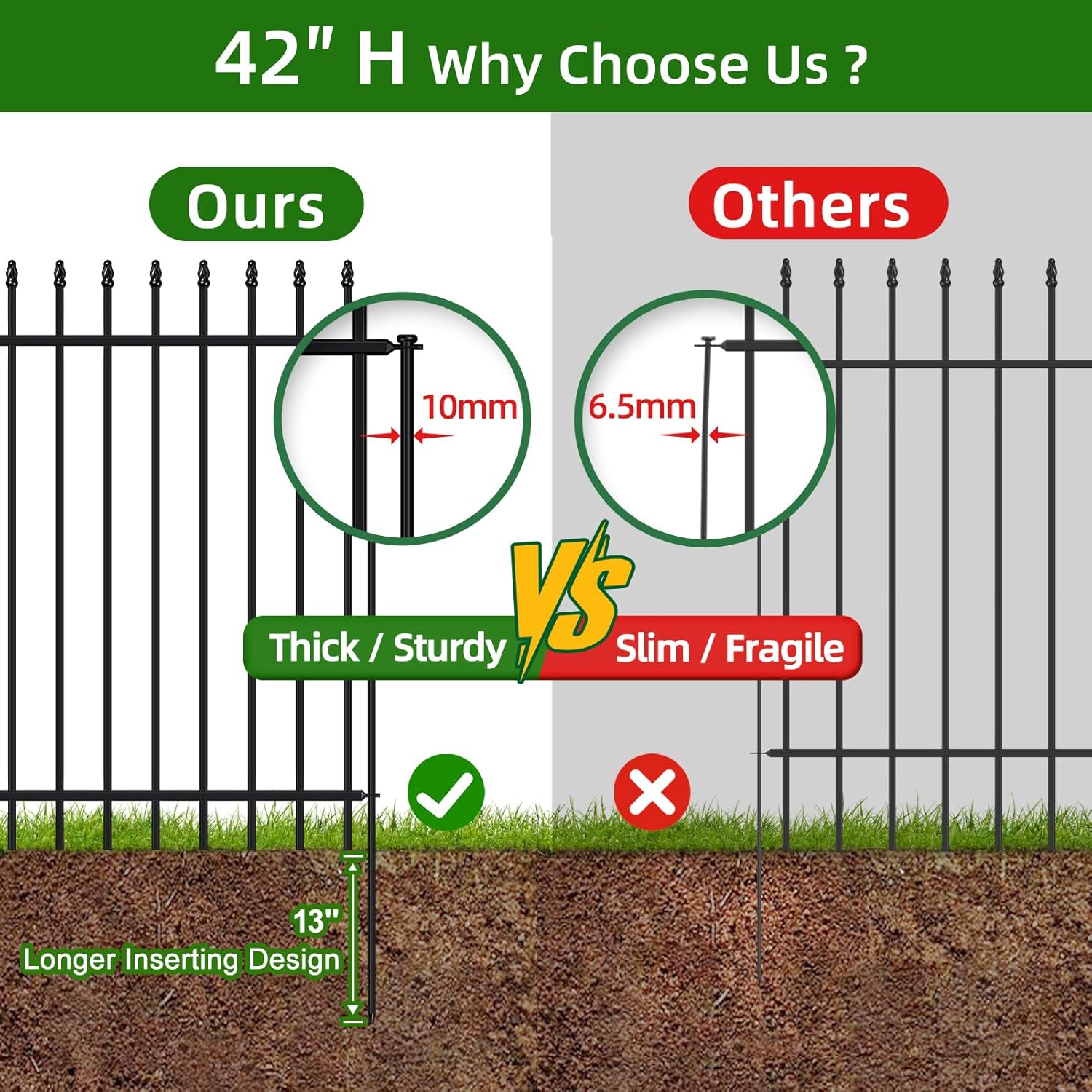 • RUSTPROOF AND DECORATIVE: This garden fencing 42 inch tall with black powder coated finish is rustproof and durable for outdoor using, classically designed Roman Column decoration on top part, which makes fences attractive.