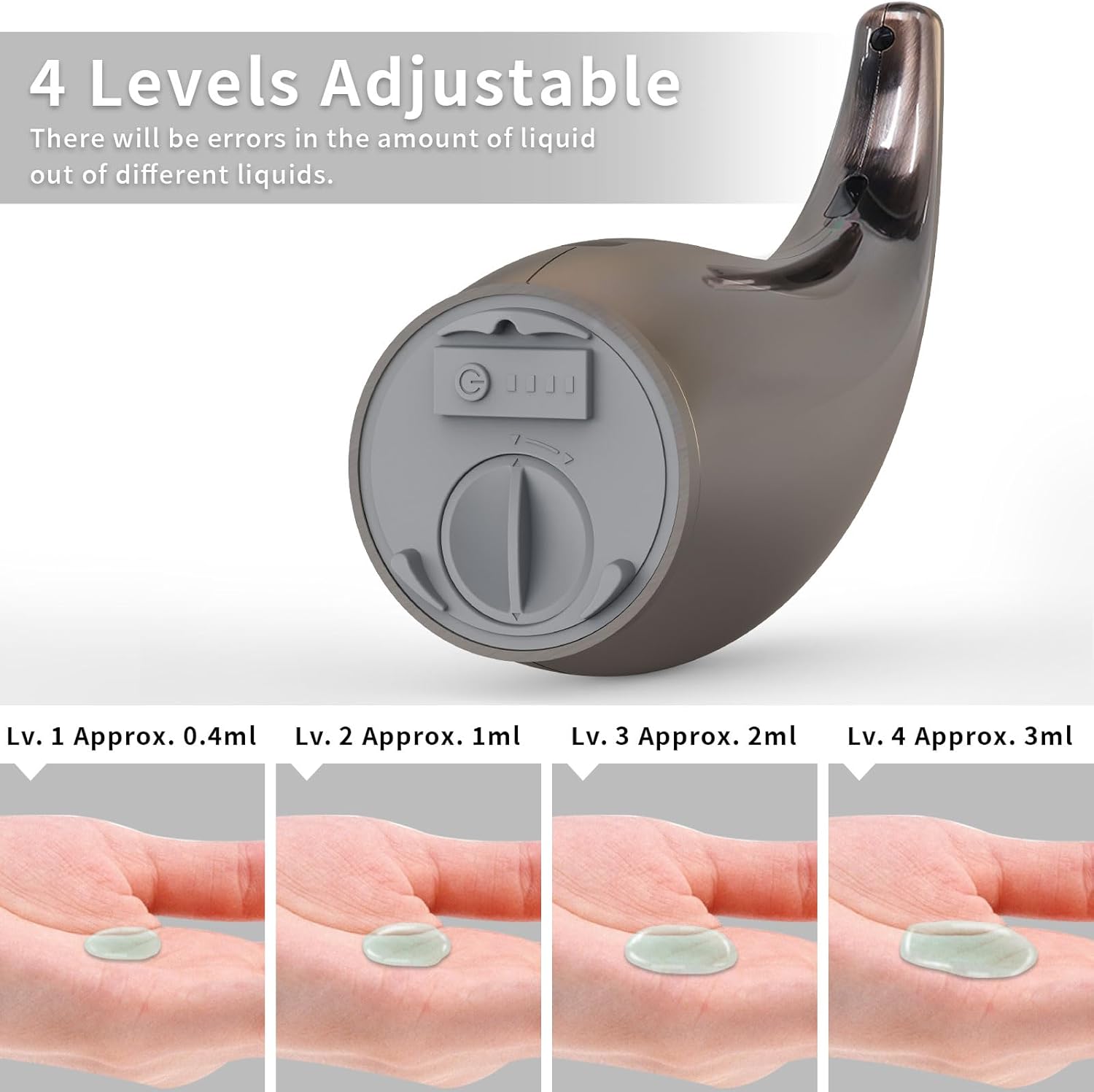 • 【Smart 4-Level Dispensing】This countertop soap dispenser offers 4 precision settings (0.4ml-3ml) - ideal for thick dish soap or light hand sanitizer. The kitchen dish soap dispenser helps reduce liquid waste while providing appropriate portions every time.