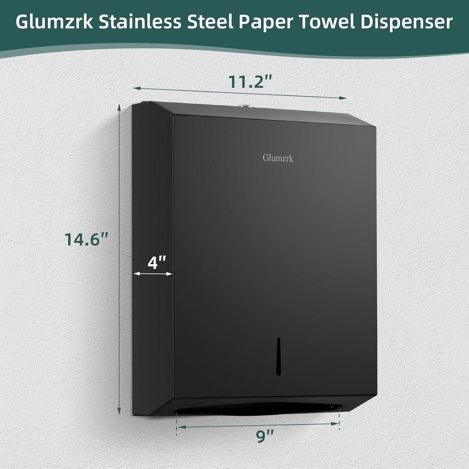 • 【Large Capacity】This paper towel dispenser holds 400-500 standard folded paper towels—perfect for C-fold, Z-fold, trifold, and multifold styles. So you don’t need to take much time replenishing tissues, convenient for use in high-traffic public places. Ensure your folded paper towels are 10" x 4" or smaller (most common sizes on the market work great!) for smooth, hassle-free dispensing every time.