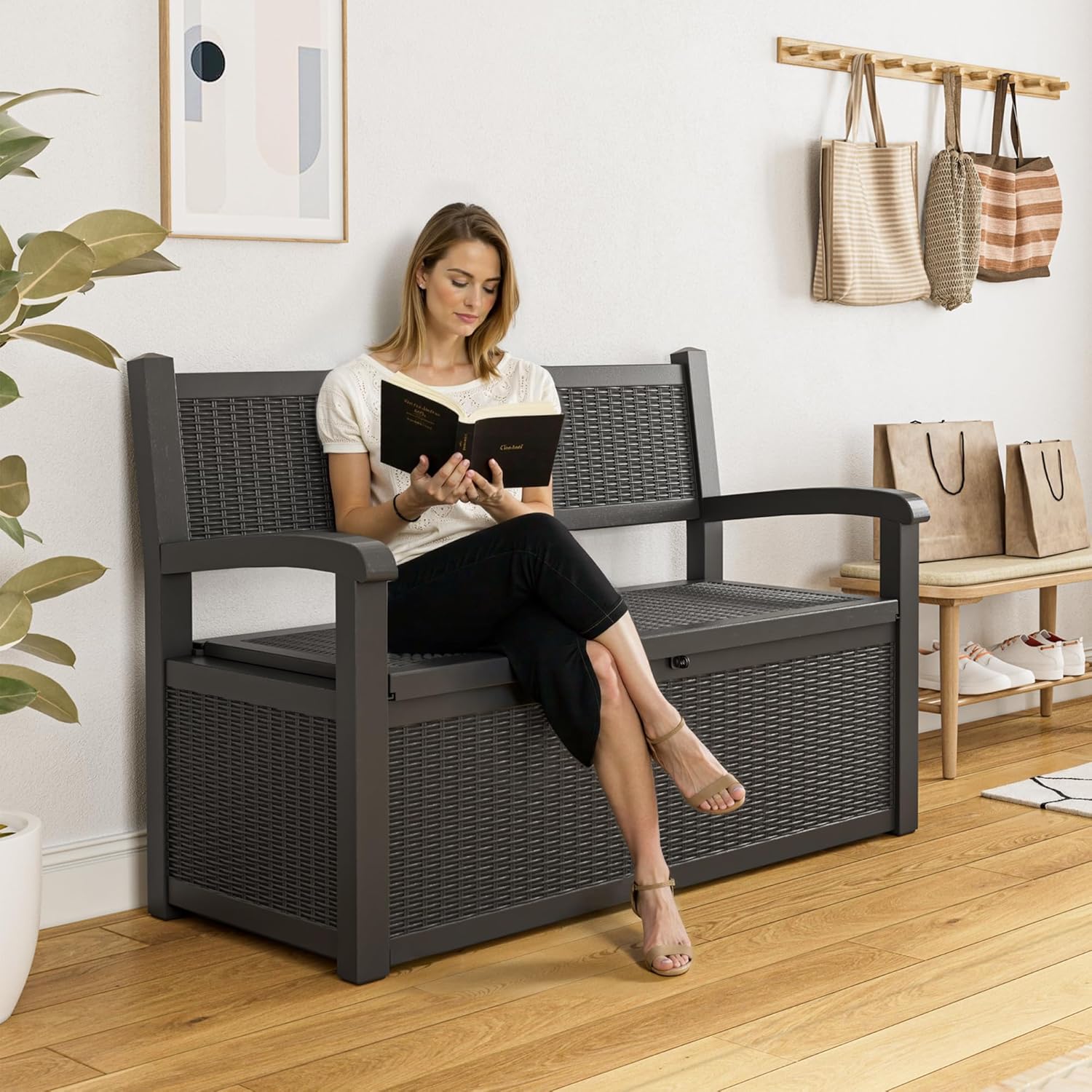 • Durable & Weather-Resistant: Crafted from weather-resistant resin, this waterproof outdoor storage bench is resistant to rust, water, and UV rays. Whether used as a deck box bench or a deck storage bench, it comes with reinforcement bars to withstand various outdoor weather conditions, ensuring long-lasting performance.