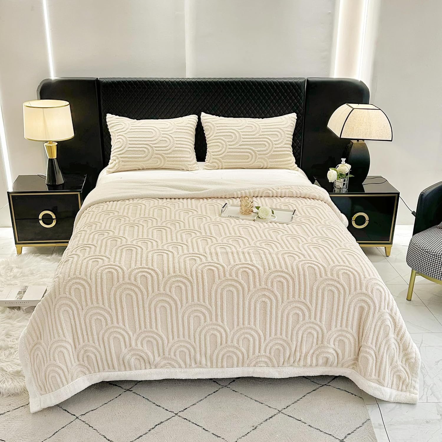 • Unique Design:coral fleece Jacquard face and sherpa fleece reverse with arch design offer you a softer touch. Snuggling on your couch or bed with our blankets to enjoy happy hours. Different colors meet your needs.