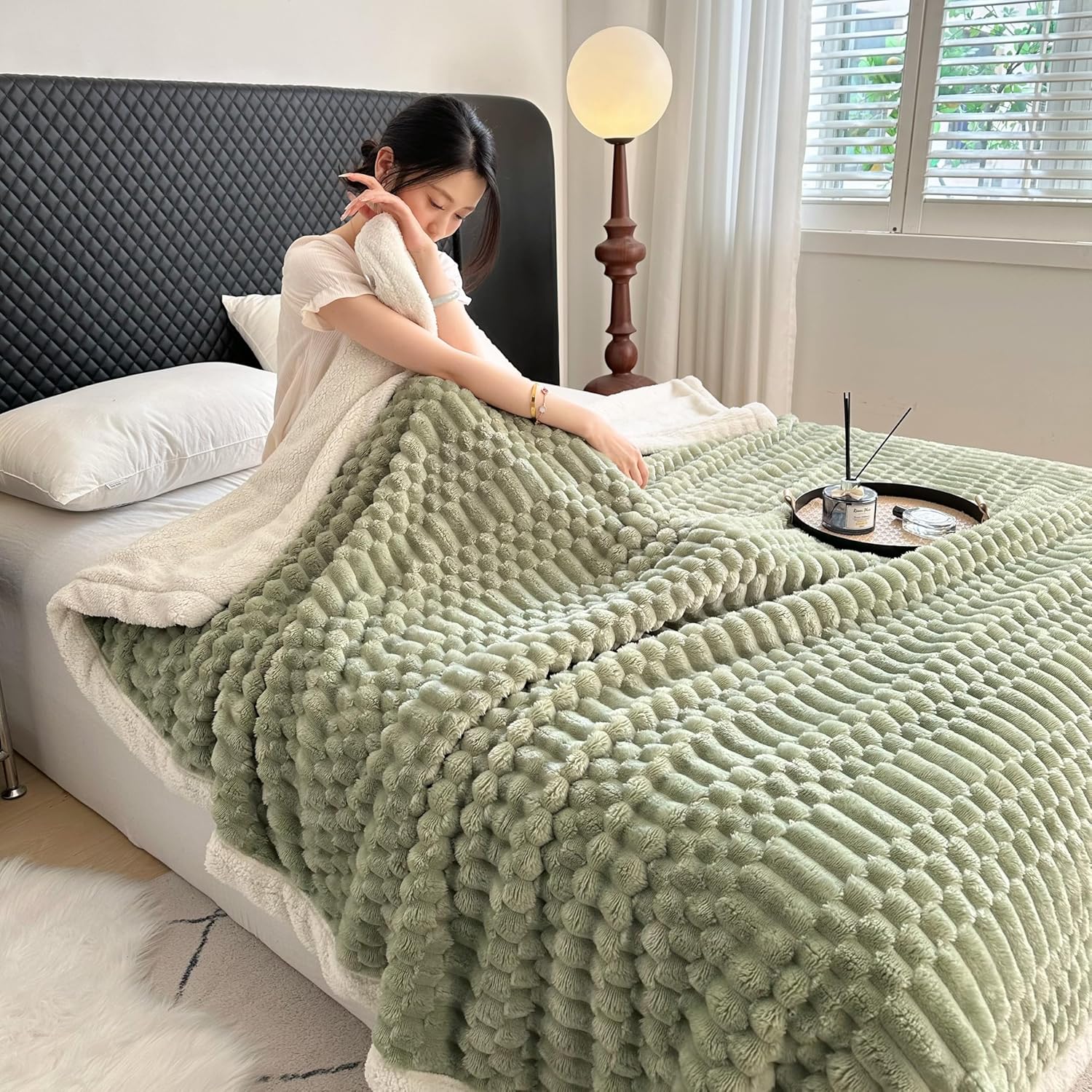 • Unique Design:coral fleece Jacquard face and sherpa fleece reverse with stripe design offer you a softer touch. Snuggling on your couch or bed with our blankets to enjoy happy hours. Different colors meet your needs.
