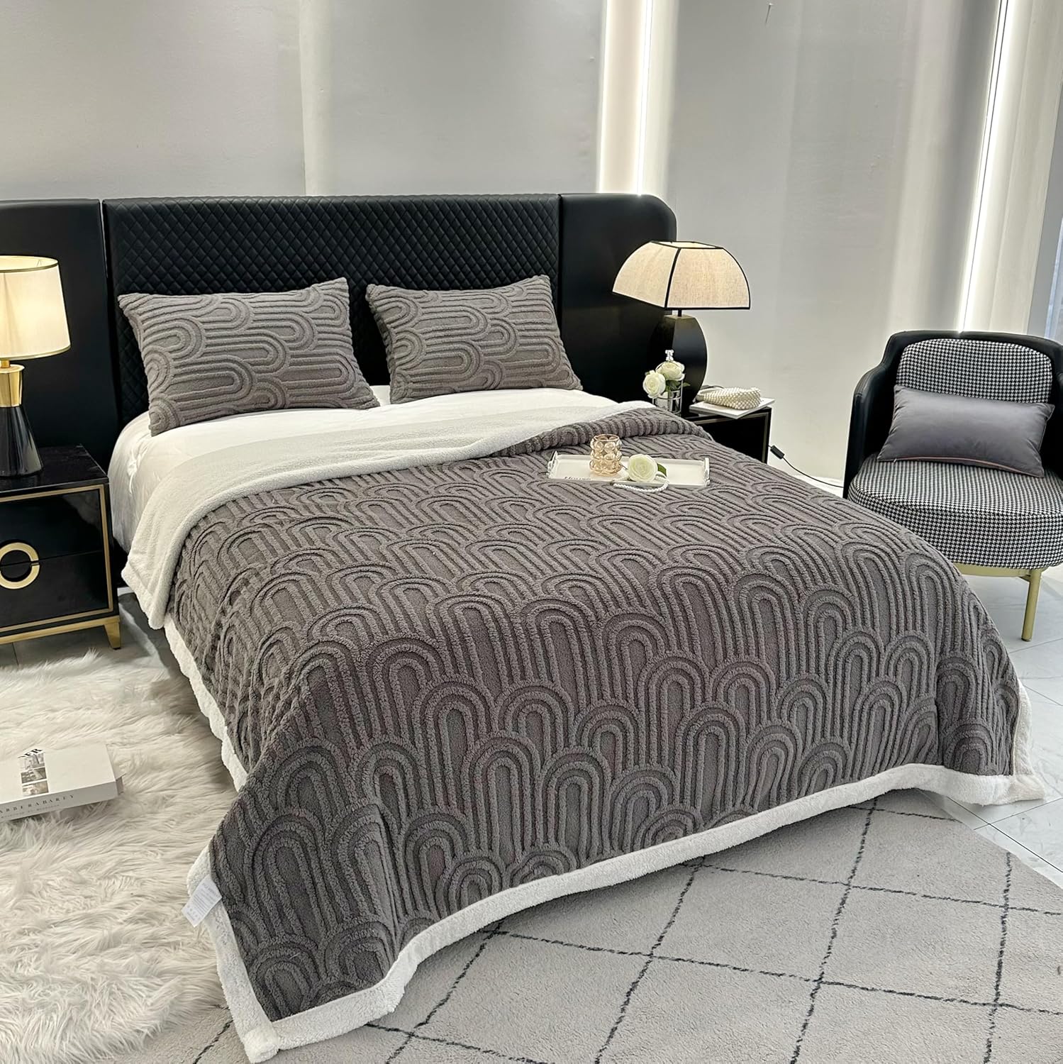 • Unique Design:coral fleece Jacquard face and sherpa fleece reverse with arch design offer you a softer touch. Snuggling on your couch or bed with our blankets to enjoy happy hours. Different colors meet your needs.