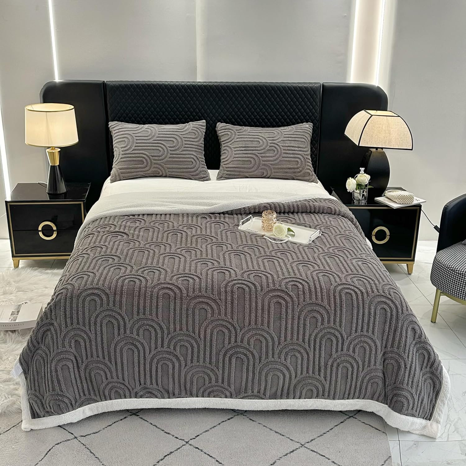 • Unique Design:coral fleece Jacquard face and sherpa fleece reverse with arch design offer you a softer touch. Snuggling on your couch or bed with our blankets to enjoy happy hours. Different colors meet your needs.