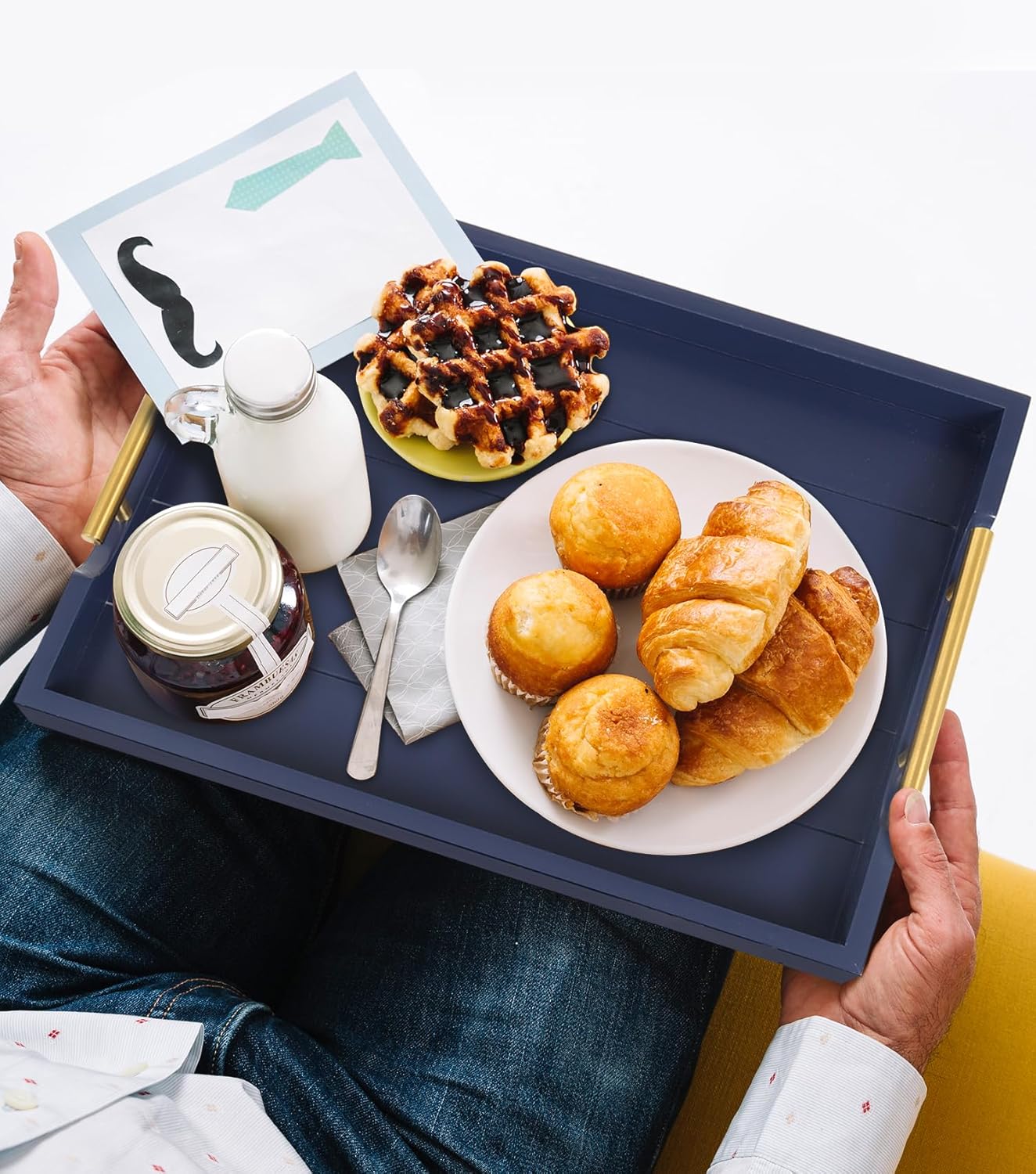 • 【WHO DOESN'T LOVE HANDCRAFTS?】Have to say our rectangle wood serving tray is so functional and stylish at the same time. Every paint process is completed by our hard workers, who aim to make each beautiful tray to prevent splinters, paint chips, and scratches. It's lightweight but sturdy enough to be used as a coffee table tray for the living room