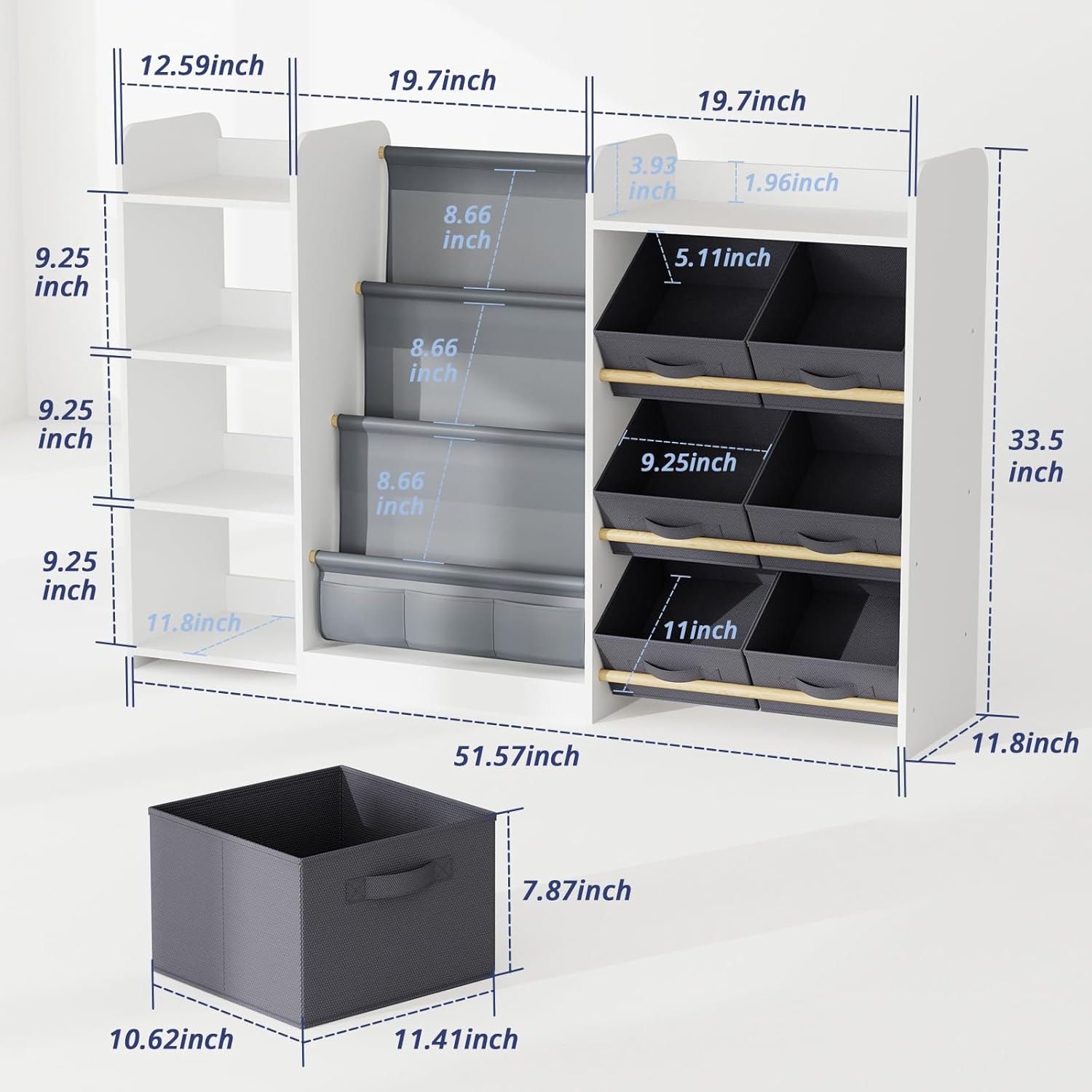 • Multi-Functional Use --- This 3-in-1 multifunctional toy organizer is a combination of 3 open display shelves, 4 tier bookshelves and 6 toy storage boxes, providing more storage space for more book supplies and toys for kids of all ages. In addition, the kids bookshelf has precise hole matching, complete required accessories and comes with installation instructions, which makes the installation easier, easier to assemble and more stable structure.
