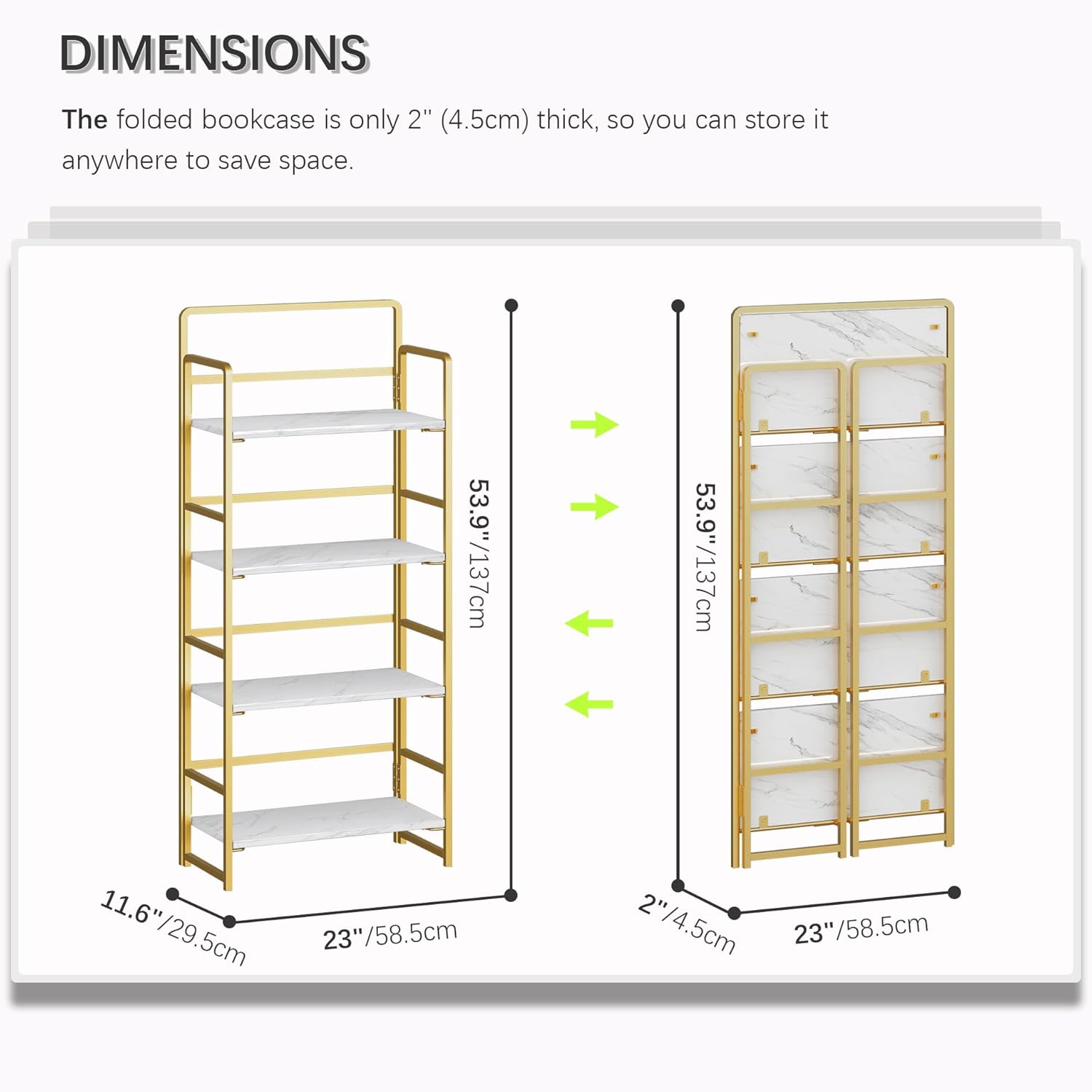• 【Storage shelf folding sized】23x2x53.9 inches (58.5x4.5x137cm).