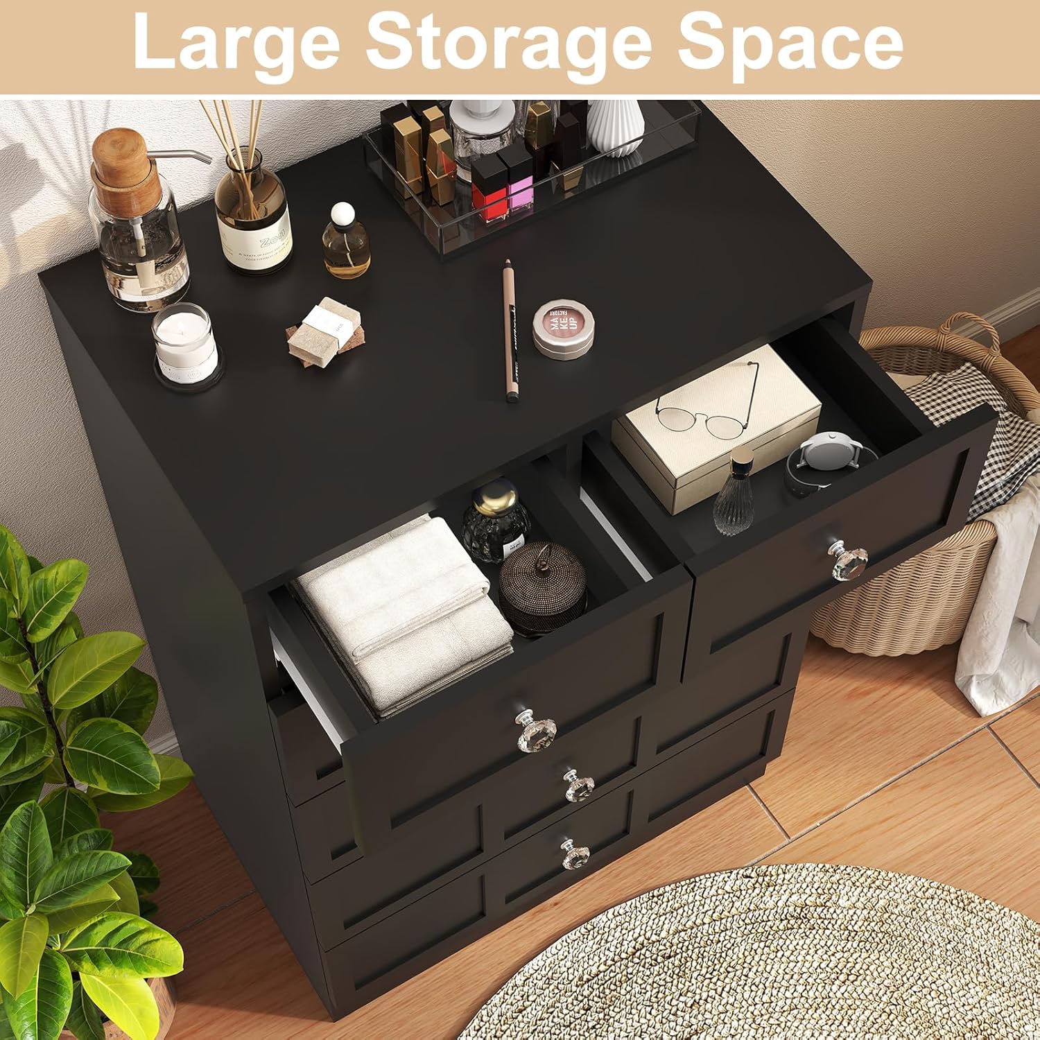 • Premium Materials Crafted for lasting quality, our 6 drawer black dresser for bedroom features high-grade engineered wood with a specially treated surface that's scratch-resistant and easy to clean. A simple wipe restores its pristine finish. The fluted 6 drawer dresser showcases crystal knobs that combine elegant design with satisfying tactile feedback, making every use a pleasure.