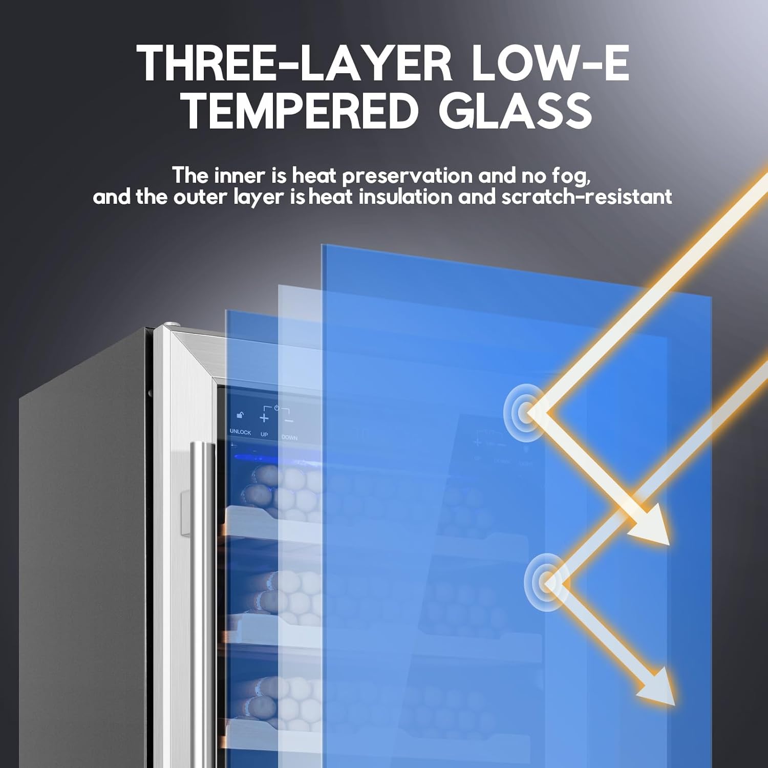 • 【Reversible Door Design & Low-E Glass】The door frame and handle of the Cigar humidor are made of stainless steel, highlighting the elegance and nobility. The reversible door design allows you to adjust the opening direction according to your preference. The Low-E composite coating between the two tempered glass panes and the microcellular high-pressure foamed insulation provide superior thermal insulation. Built-in LED blue light is convenient for you to check the cigar's status. Energy saving design, power consumption is < 0.28 kWh/24 hours, cost is < 0.06/day.