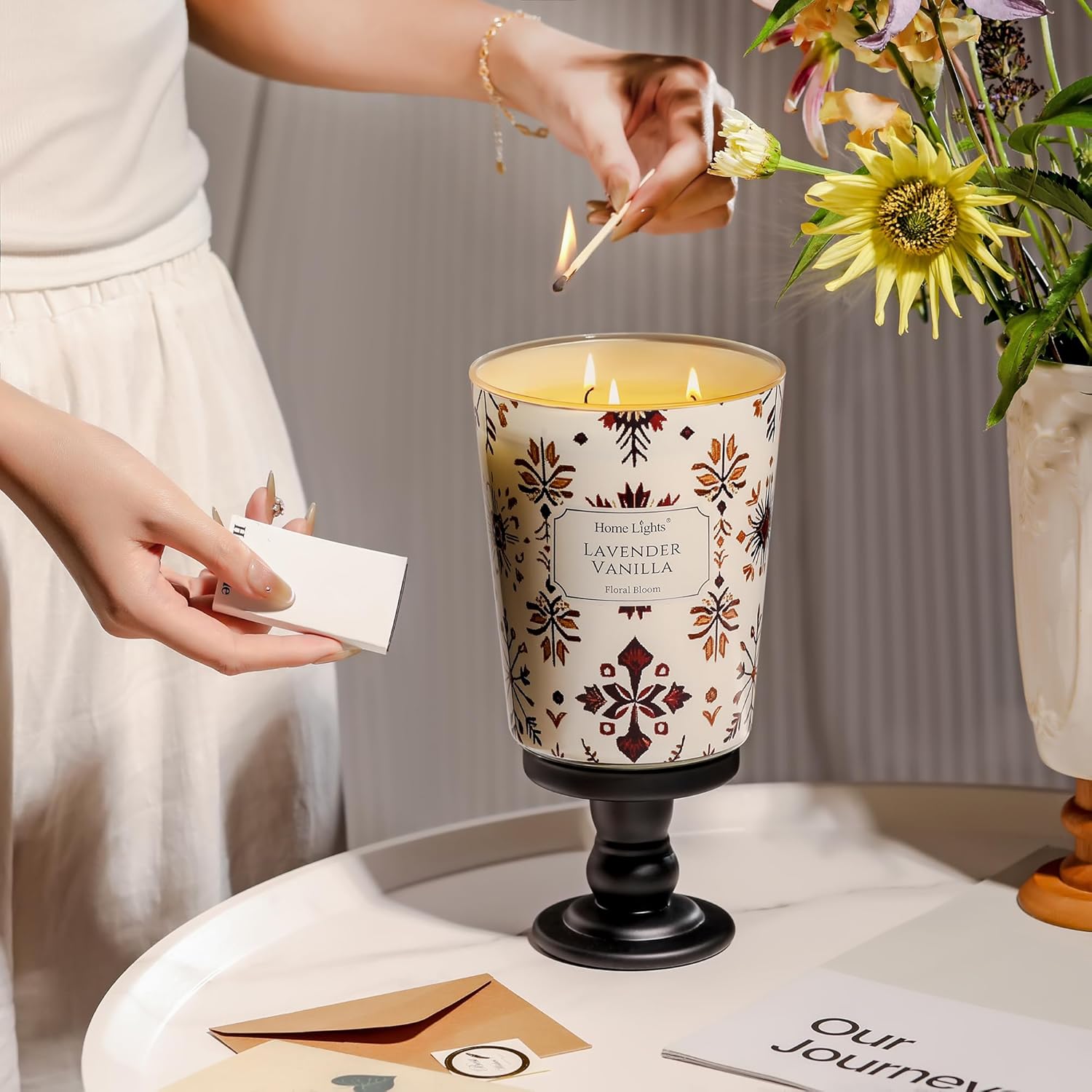 • 【Lavender Vanilla Fragrance for Relaxation】Scented Candles capture the essence of Lavender Vanilla with its soothing, floral top notes, a heart of creamy vanilla, and a soft, comforting base of warm musk. Perfect for cultivating a serene ambiance in living rooms, bedrooms, or bathrooms.