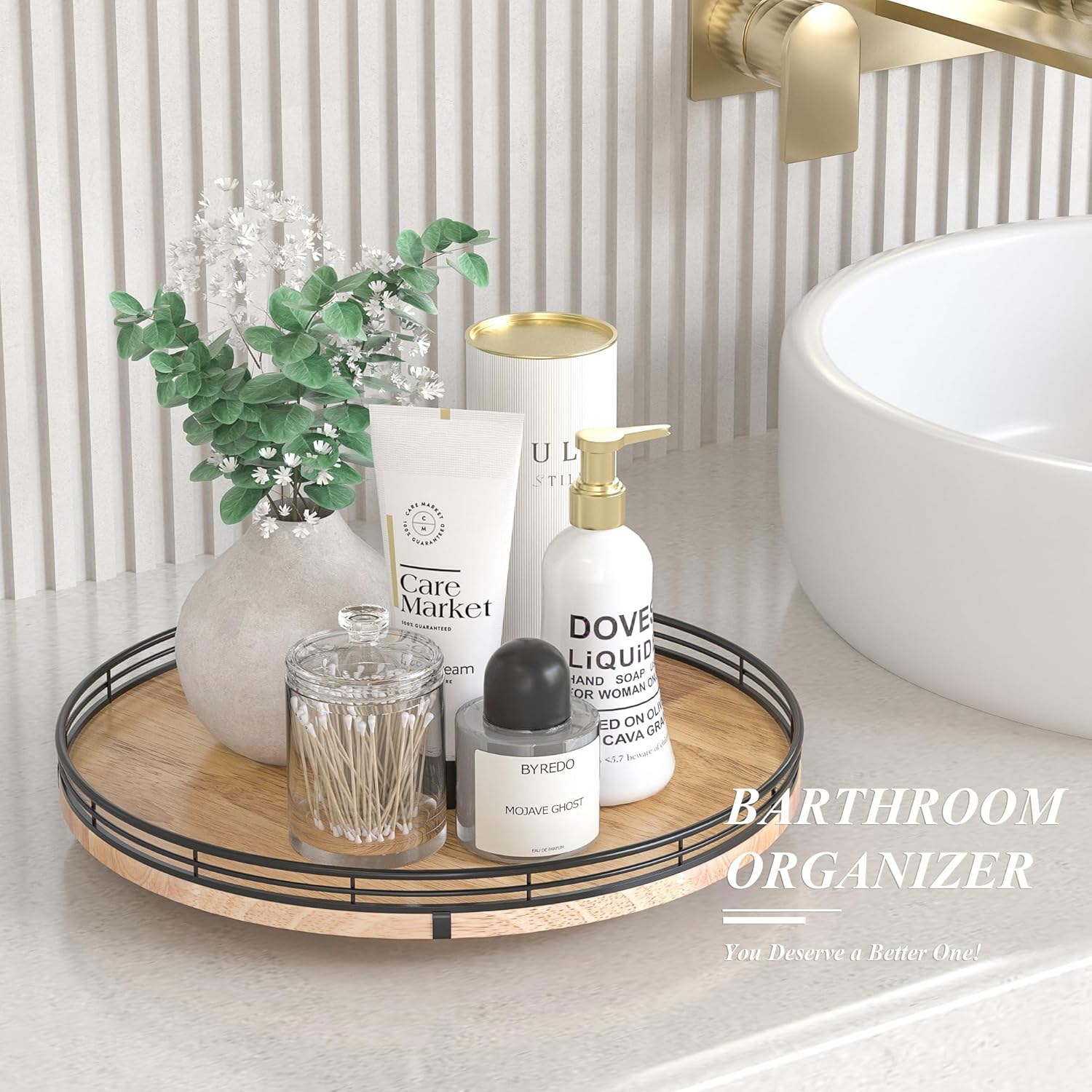 • PREMIUM MATERIAL: Our farmhouse lazy Susan organizer is made of natural solid oak wood and strong metal, sturdy, durable and premium quality. This wooden turntable organizer is a game-changer for keeping your kitchen organized. The farmhouse oak finish gives it a rustic, charming look that will fit perfectly with your kitchen decor.