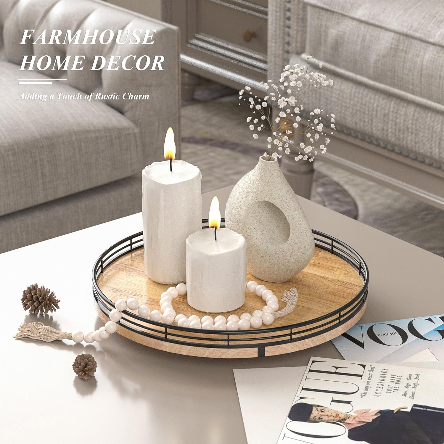 • PREMIUM MATERIAL: Our farmhouse lazy Susan organizer is made of natural solid oak wood and strong metal, sturdy, durable and premium quality. This wooden turntable organizer is a game-changer for keeping your kitchen organized. The farmhouse oak finish gives it a rustic, charming look that will fit perfectly with your kitchen decor.