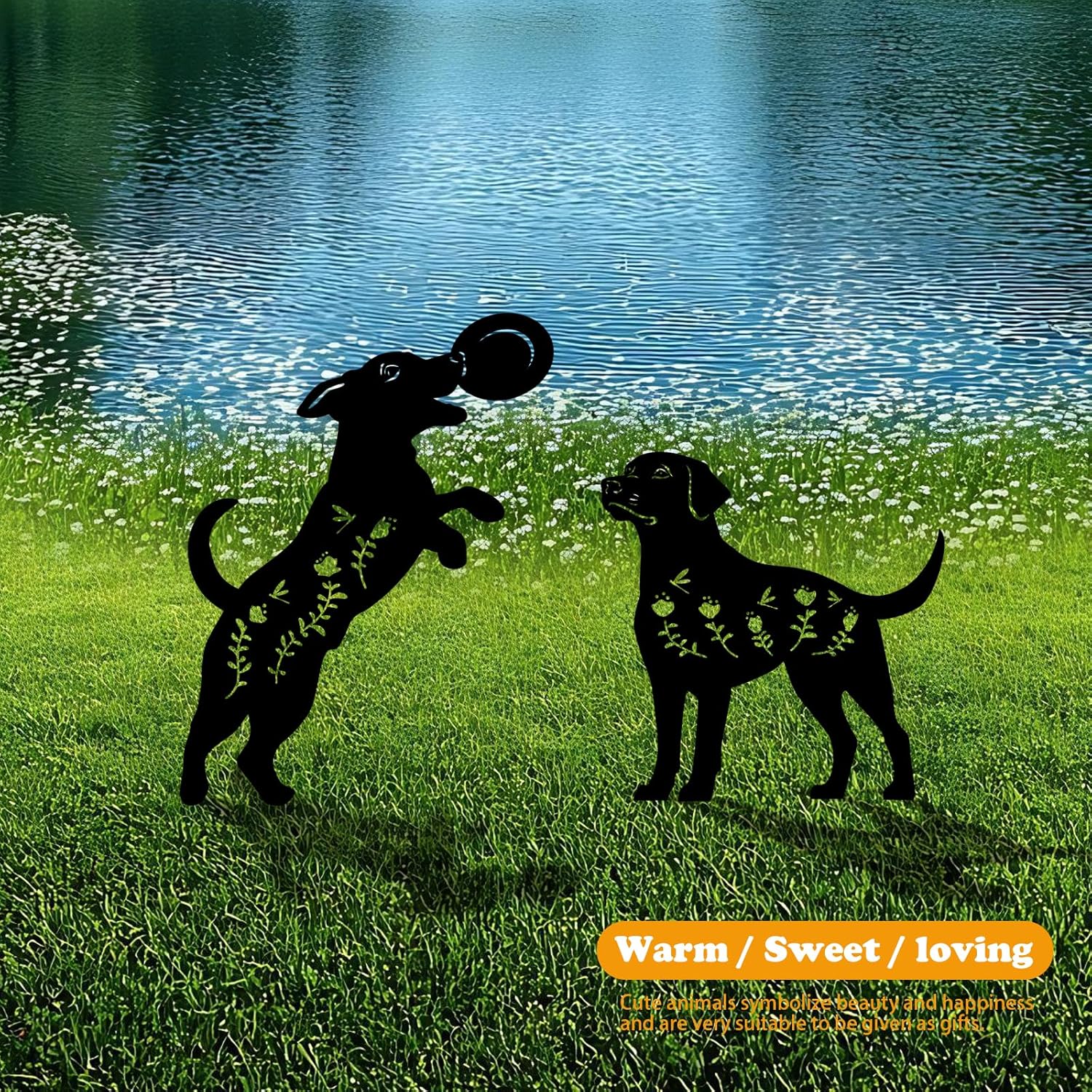 4 Pack Dog Metal Garden Decorative Stakes, Weather Proof Puppy Silhouette Statues for Yard, Patio,Outdoor Decor for Dog Lovers and Pet Owners