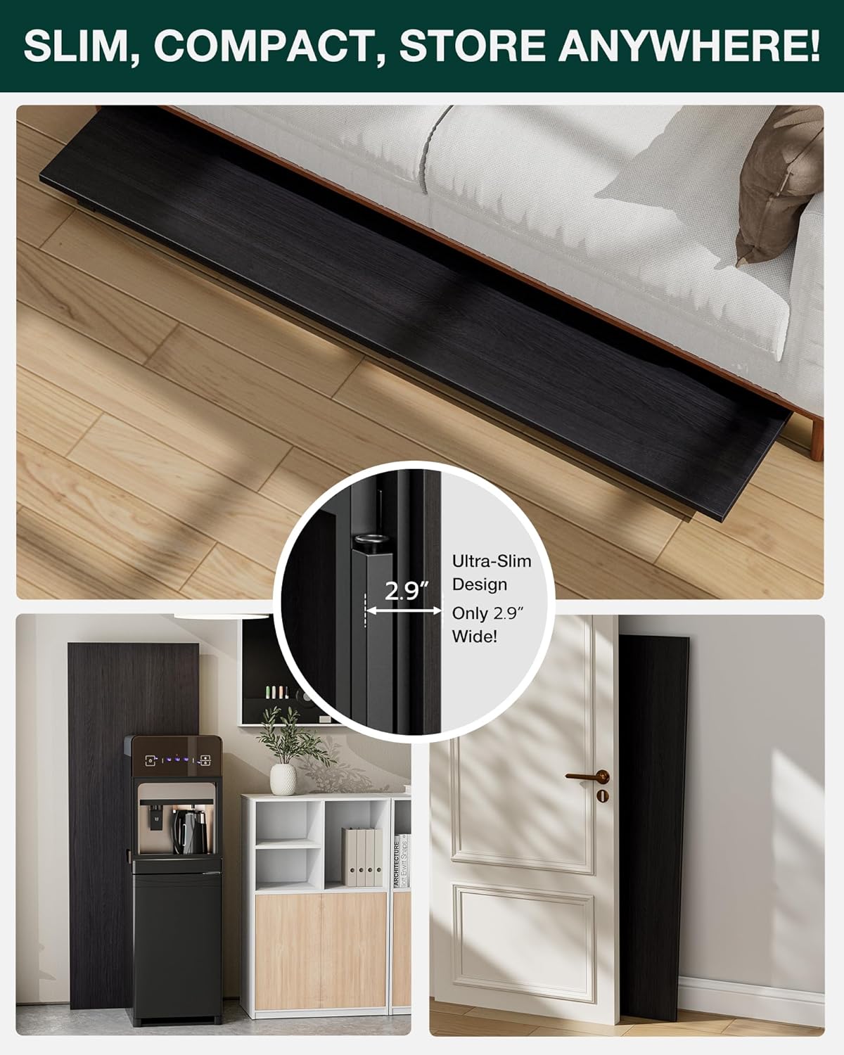 • 👍𝗙𝗢𝗟𝗗𝗦 𝗙𝗟𝗔𝗧 𝗪𝗜𝗧𝗛 𝗦𝗣𝗔𝗖𝗘-𝗦𝗔𝗩𝗜𝗡𝗚 𝗦𝗧𝗢𝗥𝗔𝗚𝗘 — With a folded thickness of only 2.9 inches, this desk fits easily under beds or behind doors. Lightweight and compact, it’s perfect for small-space living or temporary setups like trade shows and pop-up workstations