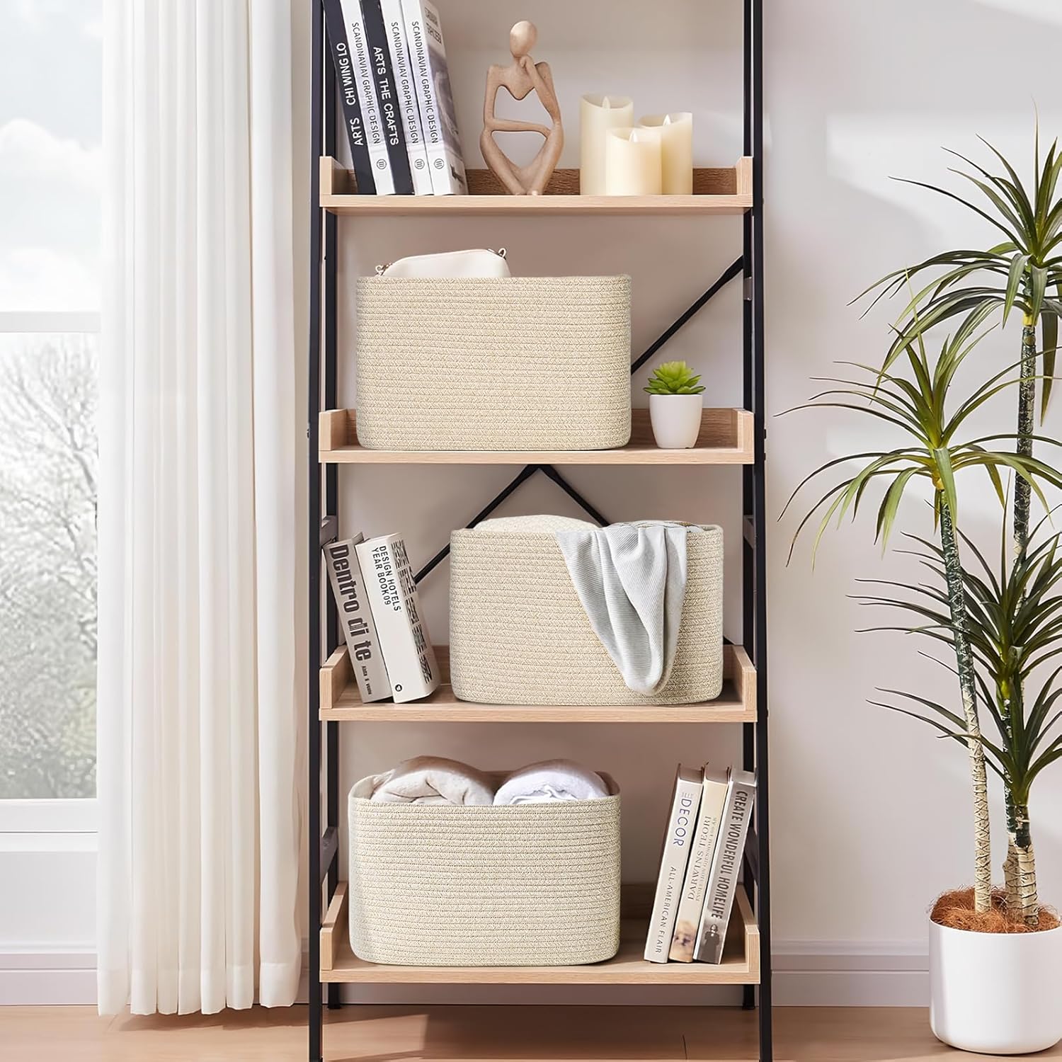 • 🎀【Cotton & Durable Shelf Baskets】: 3-Pack Storage Baskets are made of cotton rope weaving Stronger and more durable than plastic baskets and rattan baskets, will not damage the contact surfaces, in order to meet your storage needs based on the decorative role can also be played.