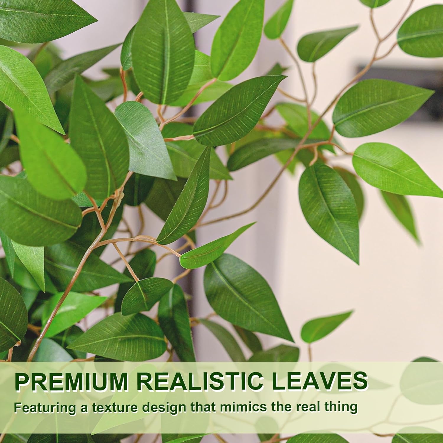 • ✅ Planter Included - Our Ficus tree comes with a 7 inch White Planter ,save extra purchase of planter.The artificial Ficus tree is pre-assembled in a sturdy plastic planter for easy placement and care.