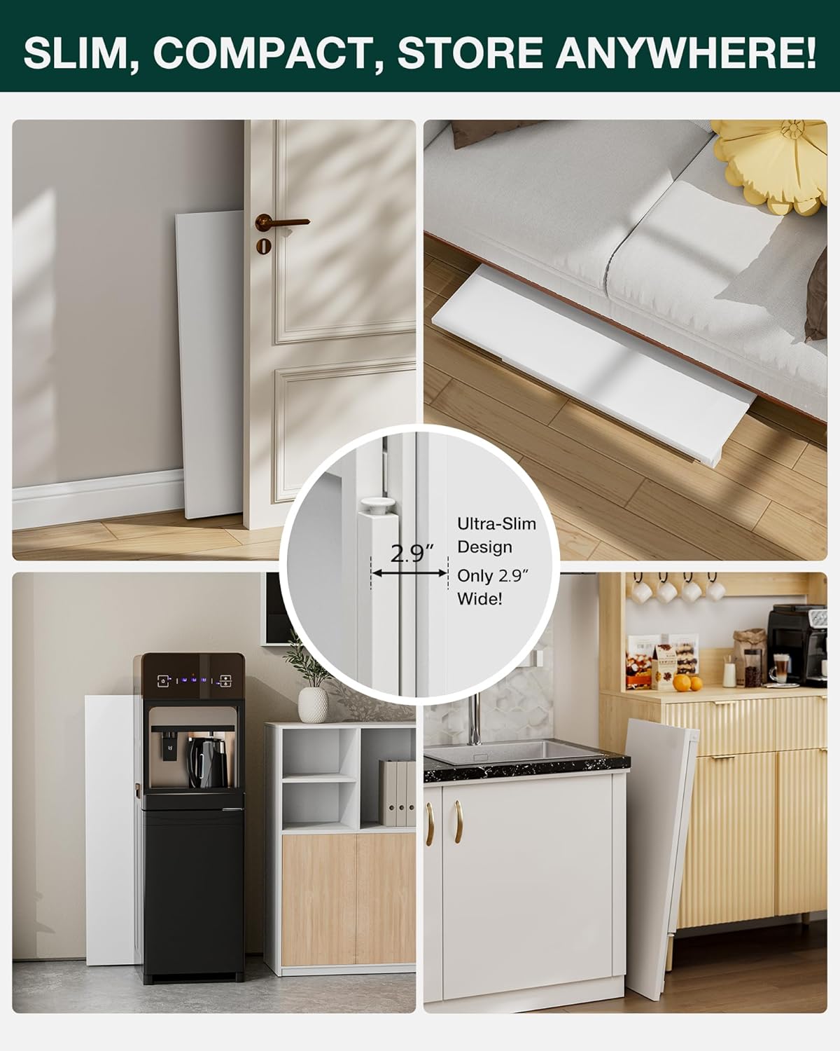 • 👍𝗨𝗟𝗧𝗥𝗔-𝗦𝗟𝗜𝗠, 𝗦𝗣𝗔𝗖𝗘-𝗦𝗔𝗩𝗜𝗡𝗚 𝗦𝗧𝗢𝗥𝗔𝗚𝗘 — When folded, the desk is just 2.9" thick—easily stored behind doors, under beds, or in closets. Lightweight and portable, it’s perfect for compact living areas or anyone needing a foldable table that’s easy to move