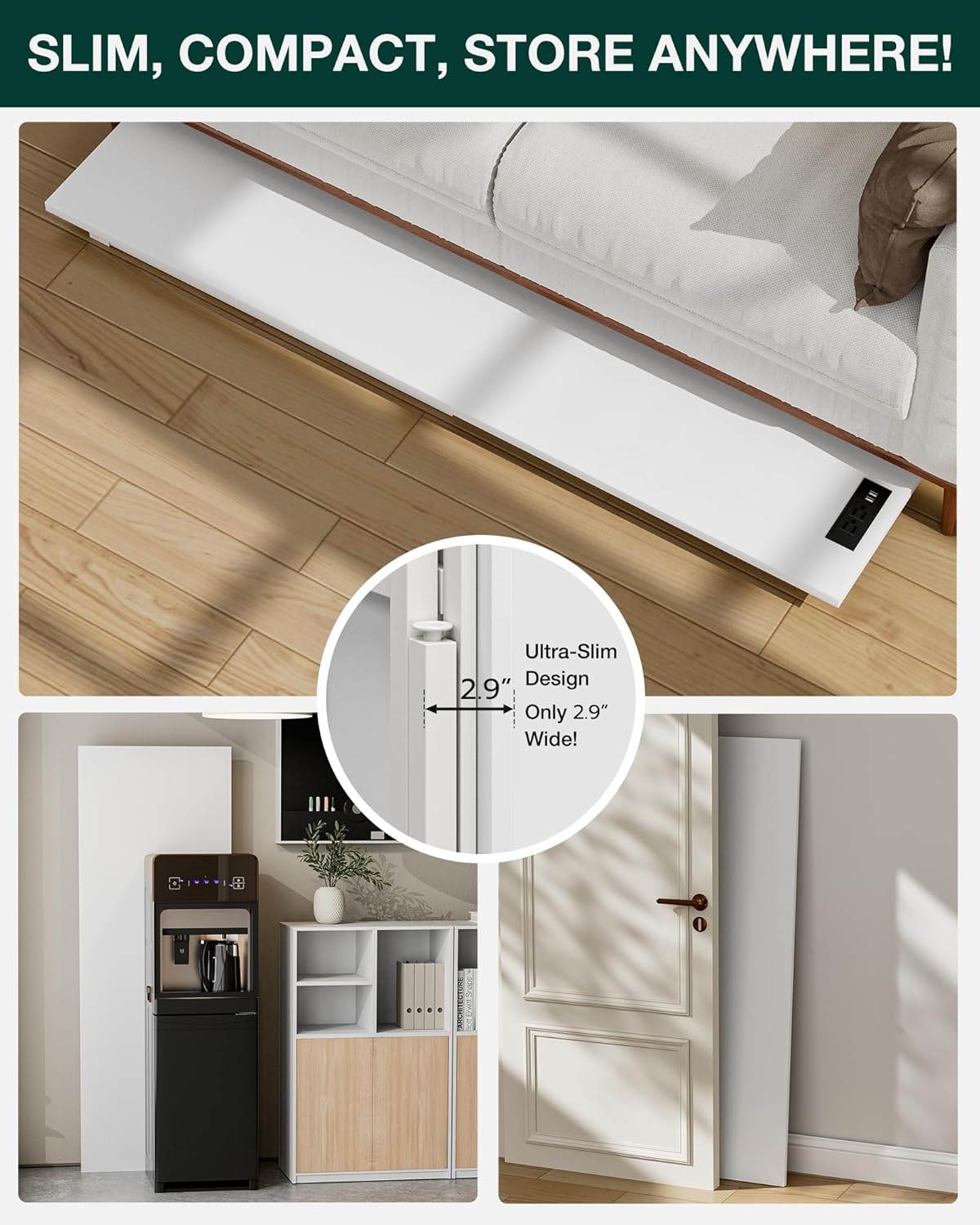• 👍𝗨𝗟𝗧𝗥𝗔-𝗦𝗟𝗜𝗠, 𝗦𝗣𝗔𝗖𝗘-𝗦𝗔𝗩𝗜𝗡𝗚 𝗦𝗧𝗢𝗥𝗔𝗚𝗘 — When folded, the desk is just 2.9" thick—easily stored behind doors, under beds, or in closets. Lightweight and portable, it’s perfect for compact living areas or anyone needing a foldable table that’s easy to move