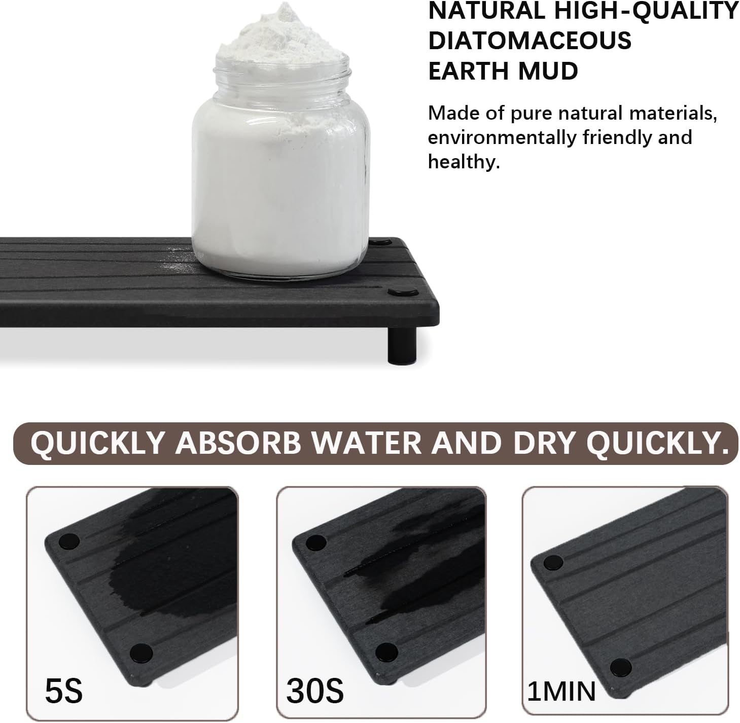 • Quick Water Absorption and Fast Drying --- Our fast drying kitchen sink organizer is made from natural diatom mud, the small pores in diatomaceous earth give it amazing water absorption. It swiftly absorbs water and dries in minutes, keeping your countertop consistently dry and tidy, free from pesky water droplets.