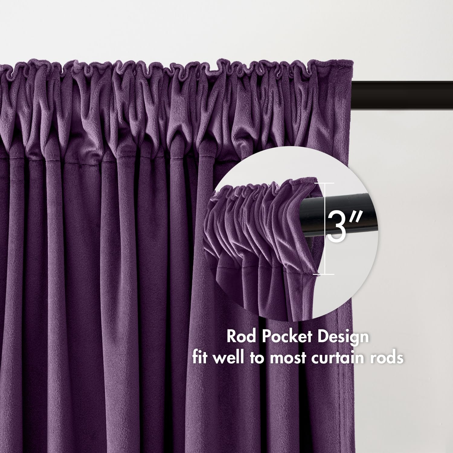 • FUNCTION: Thick and heavy blackout curtain drapes can block 60-70% of the sunlight (the darker color works better).These velvet curtains can also reduce noise,stay temperature down in summers,keep cold wind out in winters to achieve smart energy saving and provide privacy as well.