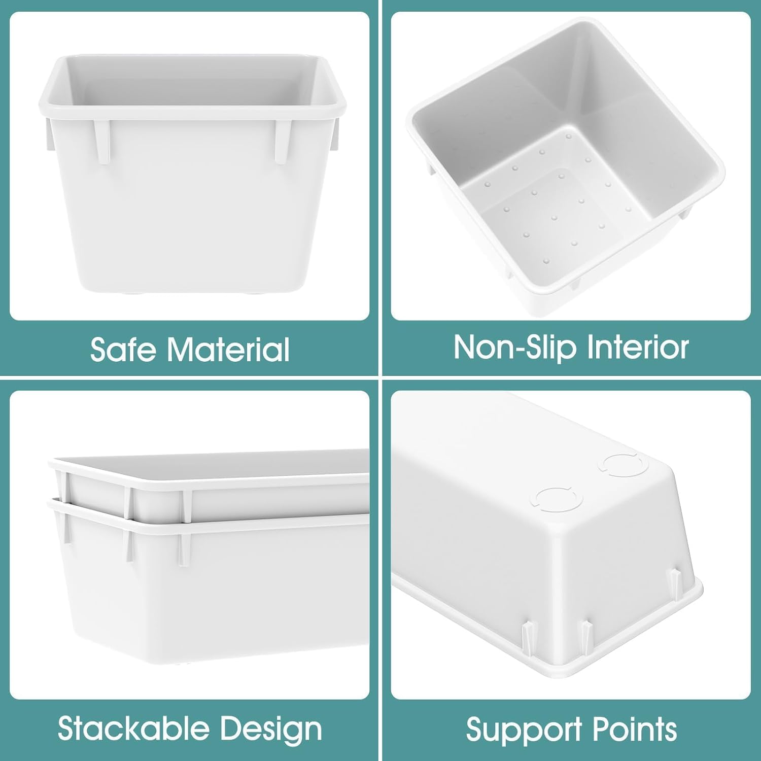 • Long Lasting and Non-Slip: The plastic has 3-5 times the impact strength of other materials and is robust and long lasting. The bottom of the storage organizers has a non-slip design to prevent the tray from moving around when the drawer is used