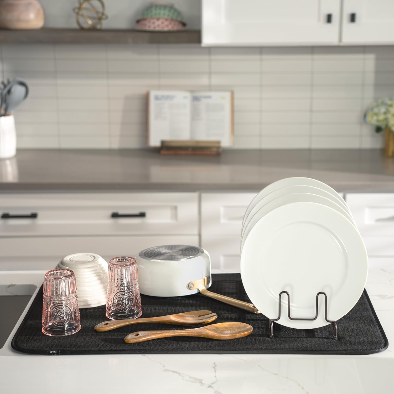 • Dish drying mats for kitchen counter are reusable, machine washable, and easy to store for kitchen organization; durable construction will not chip or break like a stone dish drying mat for kitchen