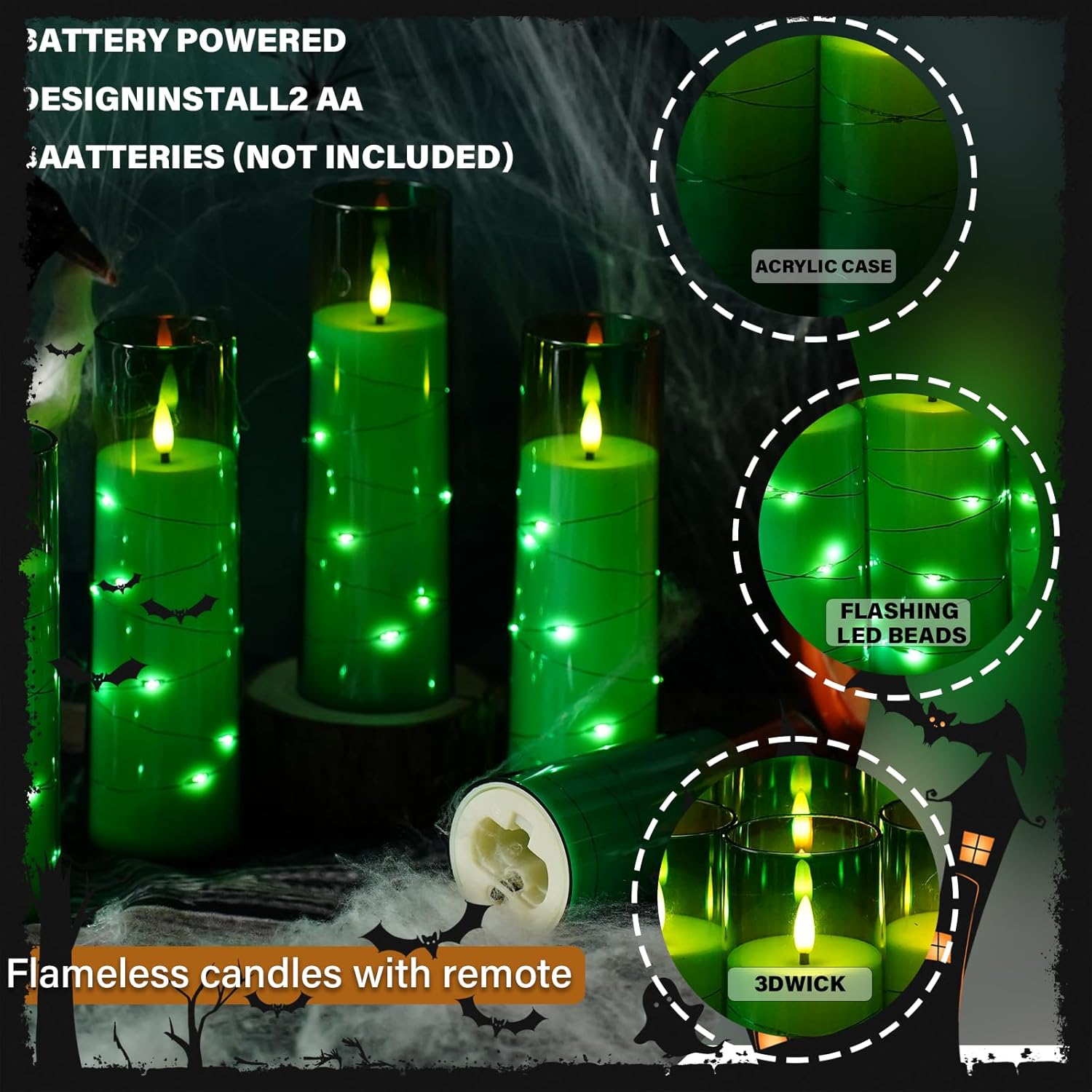 • 【Battery Operated】: These candles are powered by batteries(not included), providing the ultimate flexibility in placement. You can adorn your dining table, mantel, or any room without being limited by the need for electrical outlets. Enjoy the beauty of these flickering candles wherever you desire.